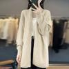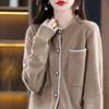Outono e Inverno 2024 Novo Cardigã Tricotado de Caxemira com Gola Careca Manga Longa Solto Cor Sólida Casaco Quente para Mulheres