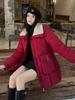 Casaco de Algodão Feminino Comprimento Médio 2025 Inverno Novo Estilo Gola de Lã de Cordeiro Bloco de Cores Lapela Solto Casual Quente Jaqueta de Algodão Tendência