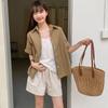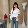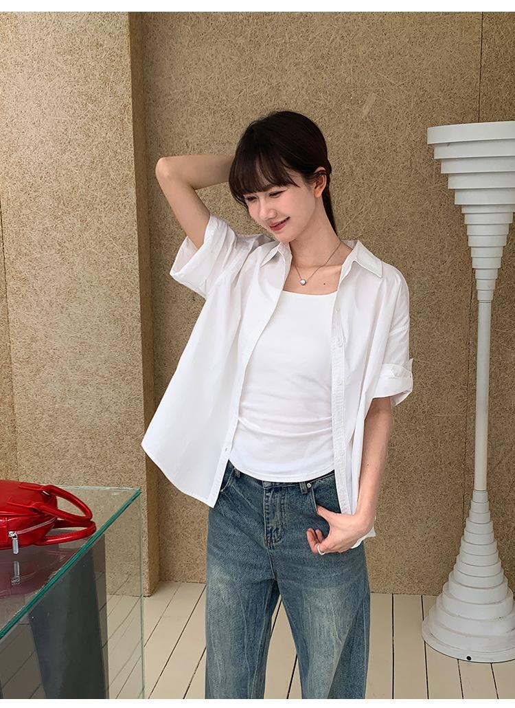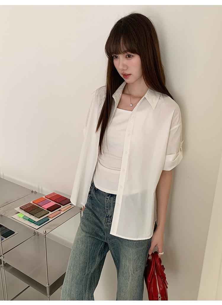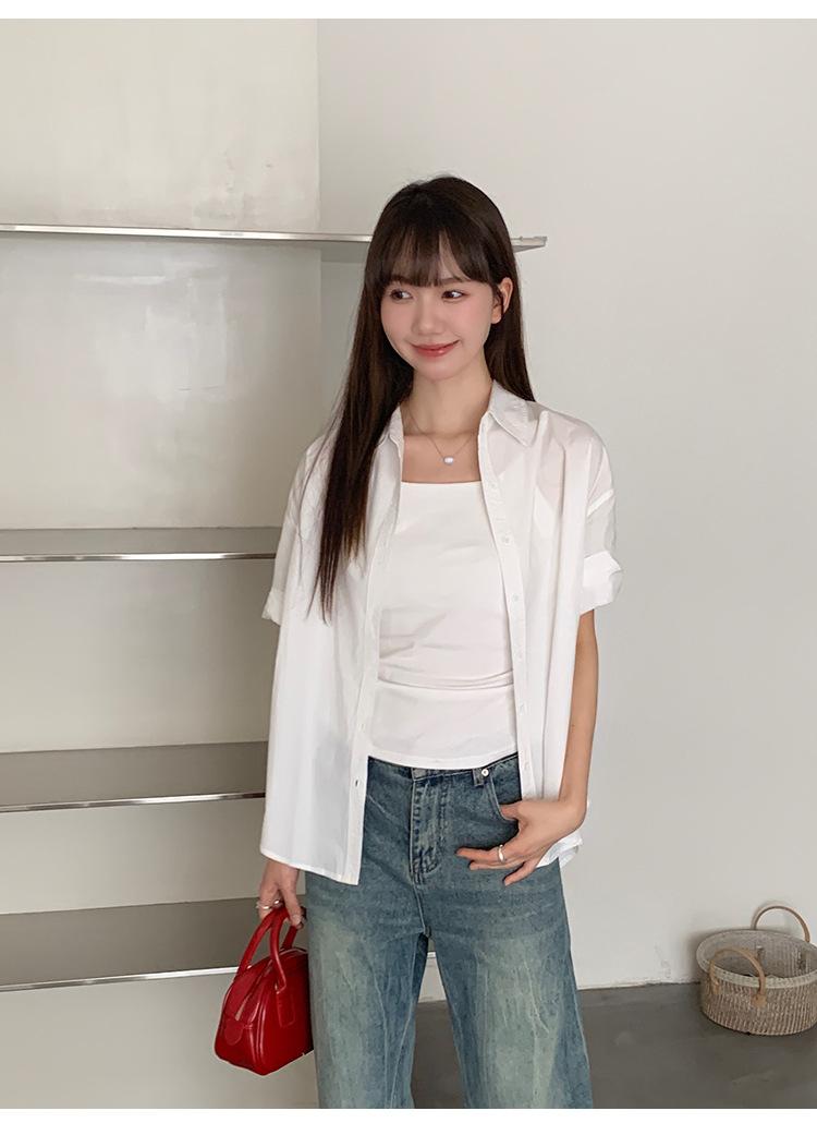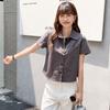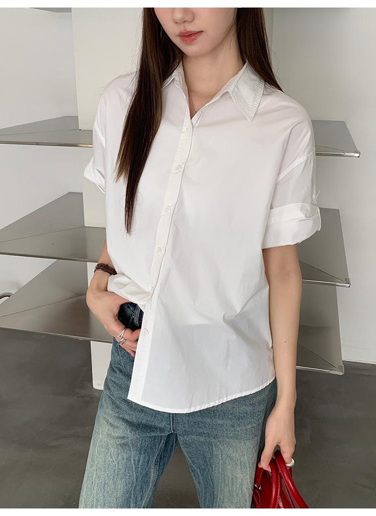 Foto Real da Camiseta de Manga Curta com Ombro Direito Descoberto para Mulheres Verão 2025 Novo Design Versátil Nicho Casual Top Solto