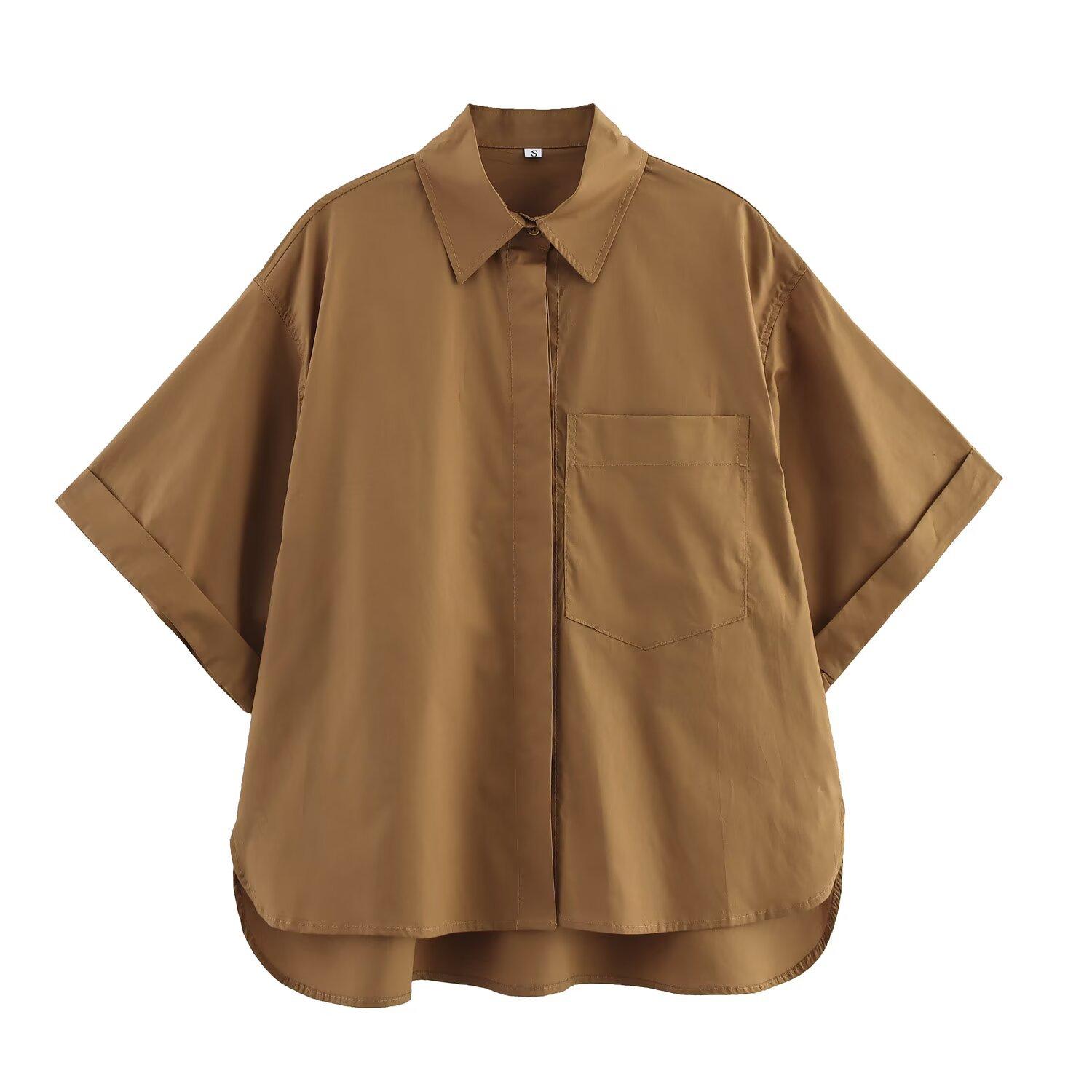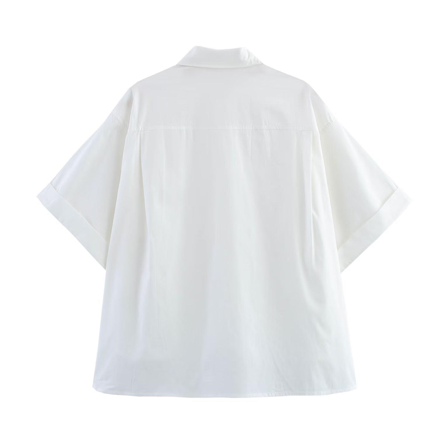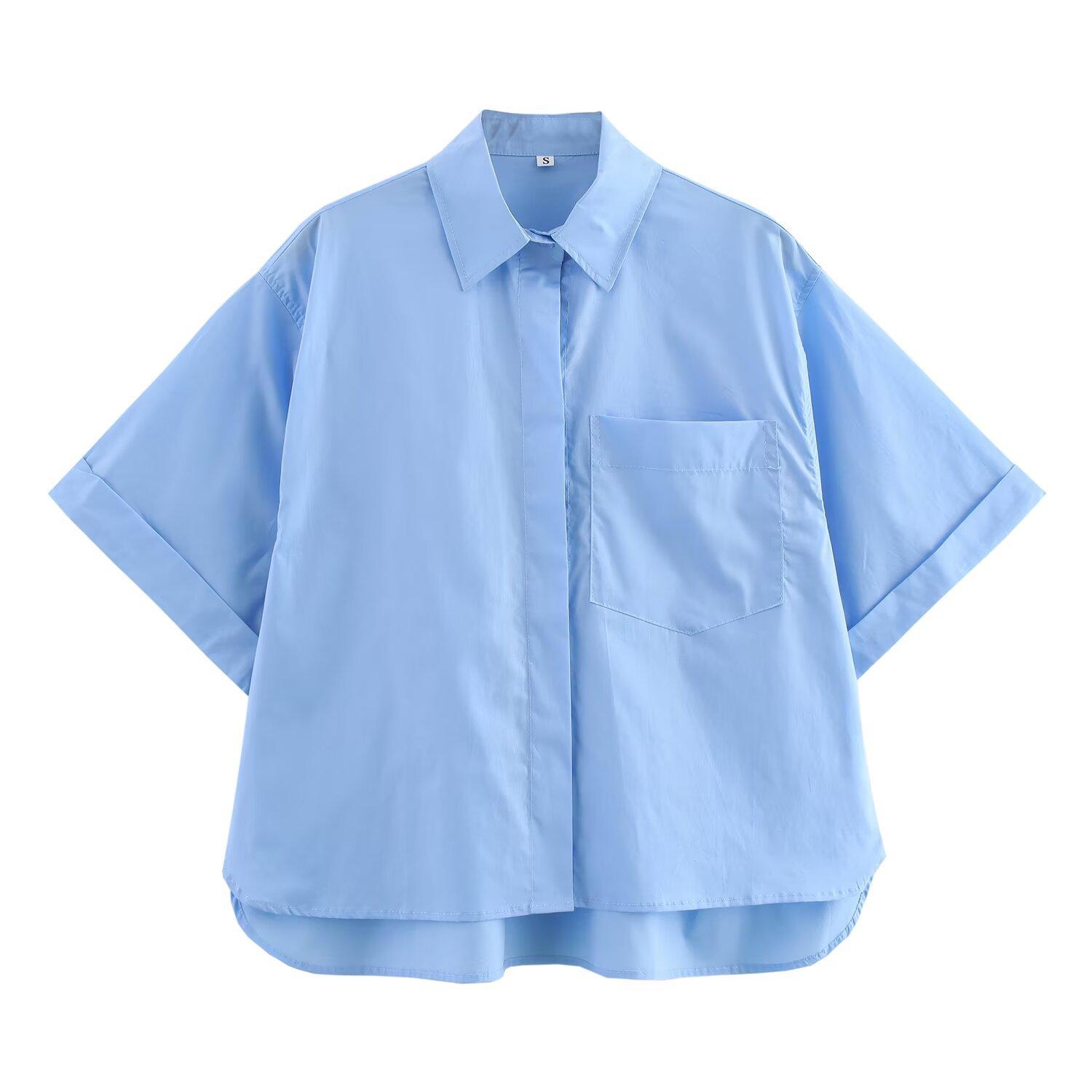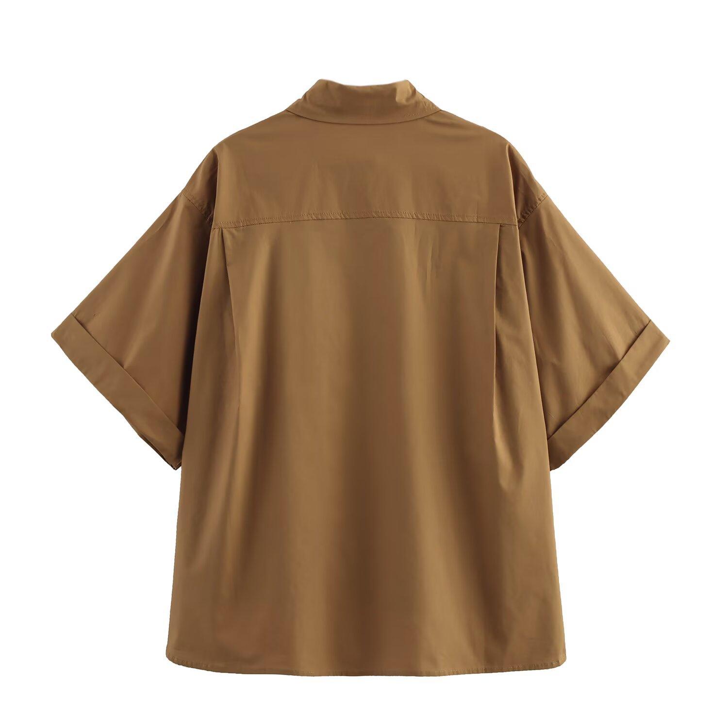 Moda Feminina Europeia e Americana Atacado 2025 Verão Novo Versátil Casual Solto Bolso Poplin Camisa para Mulheres