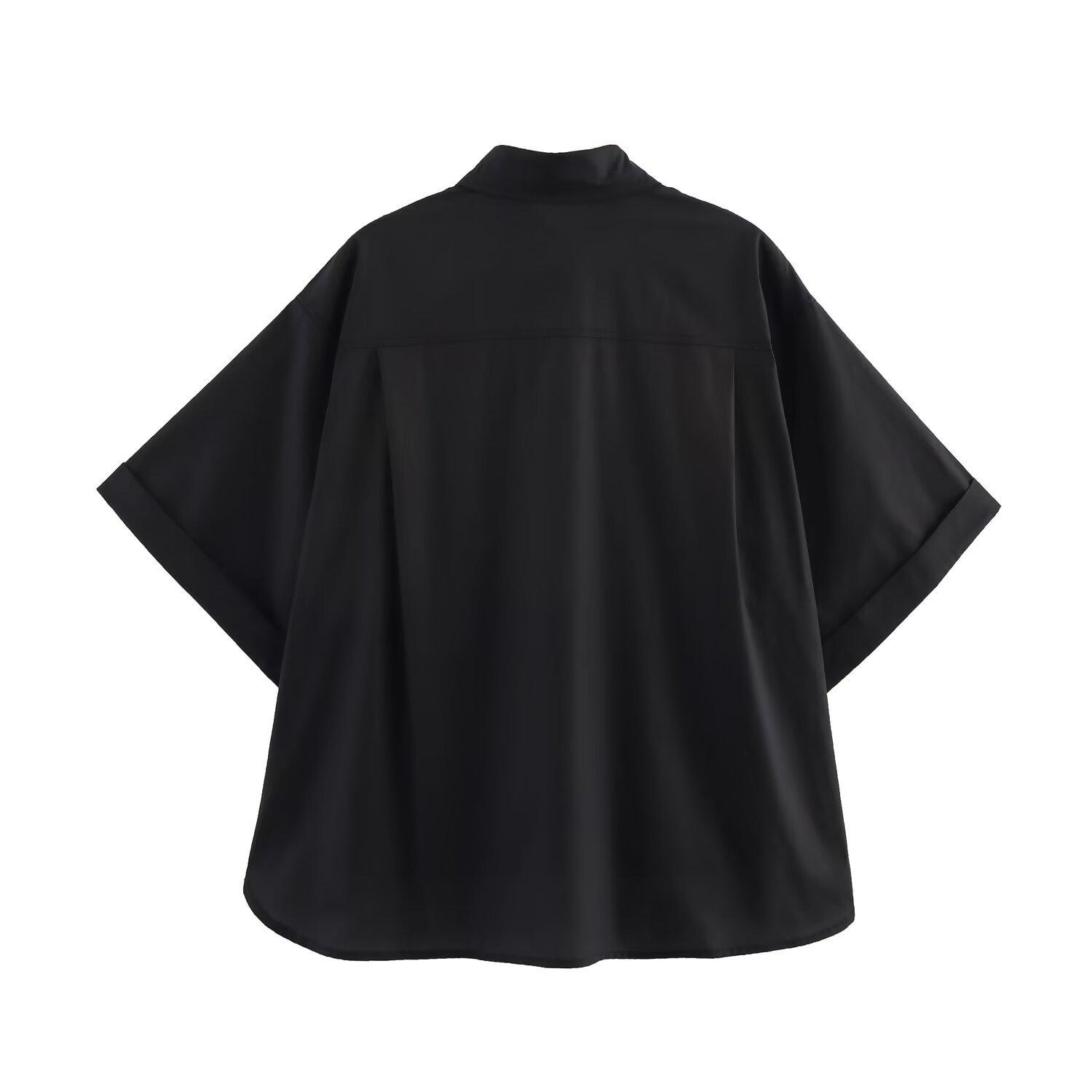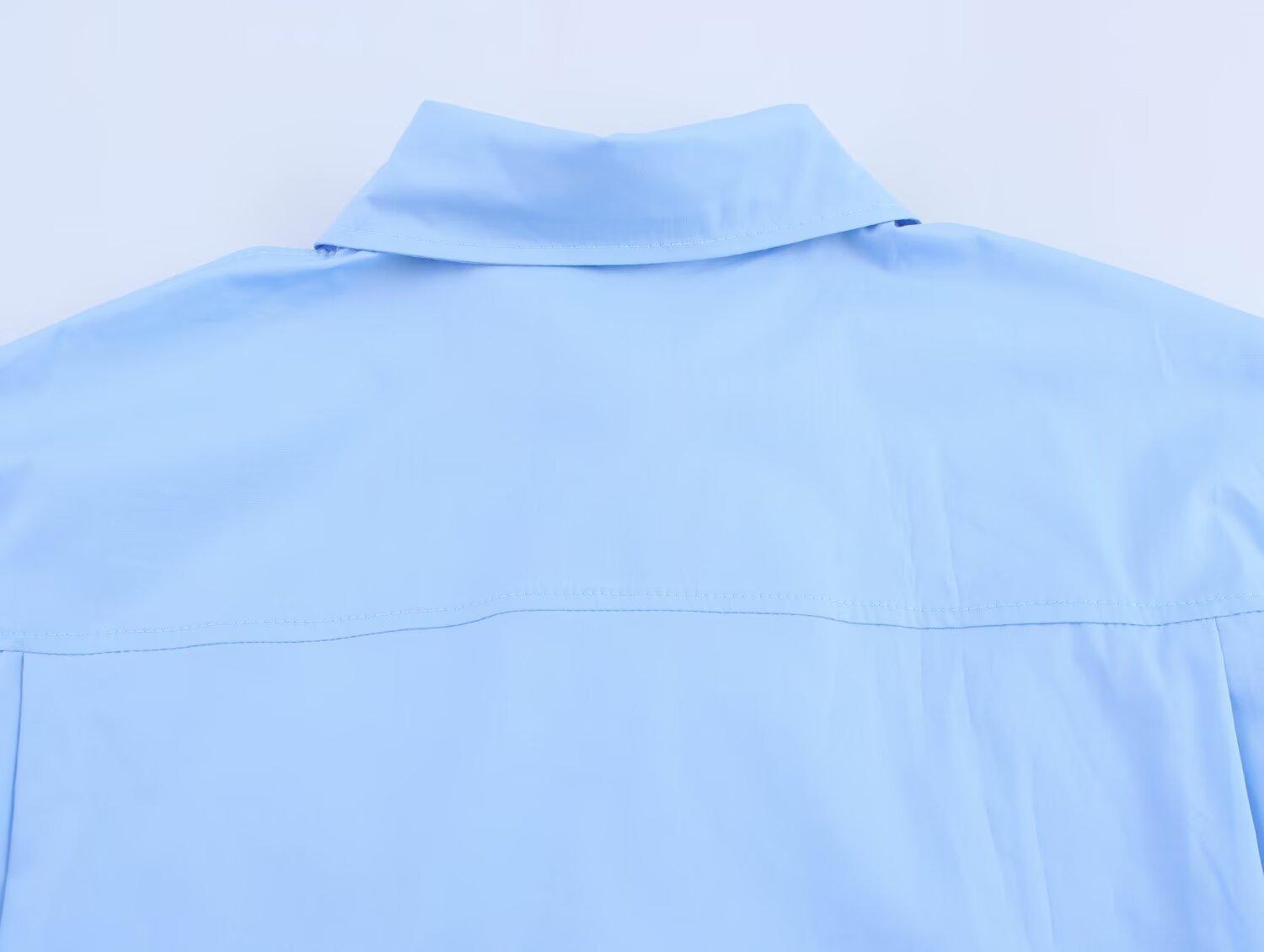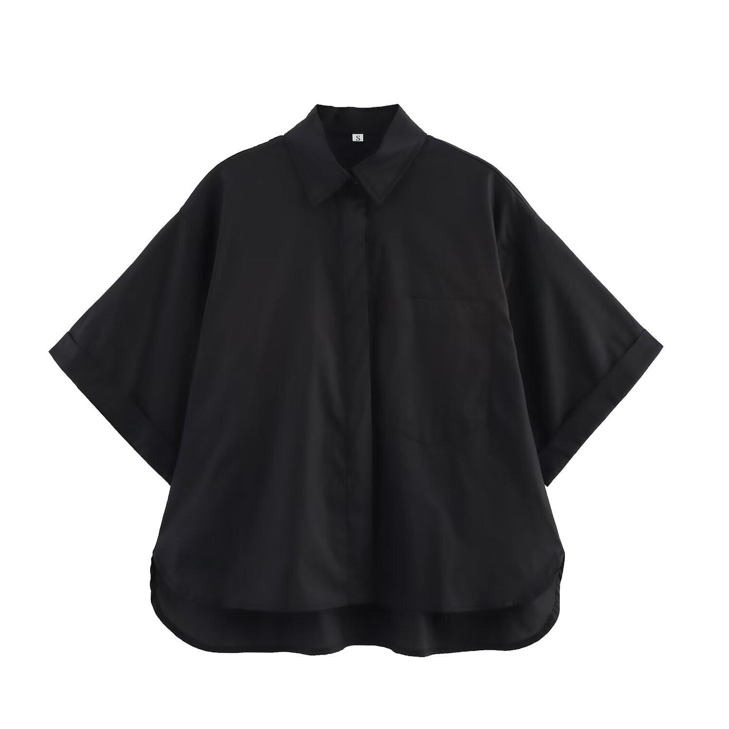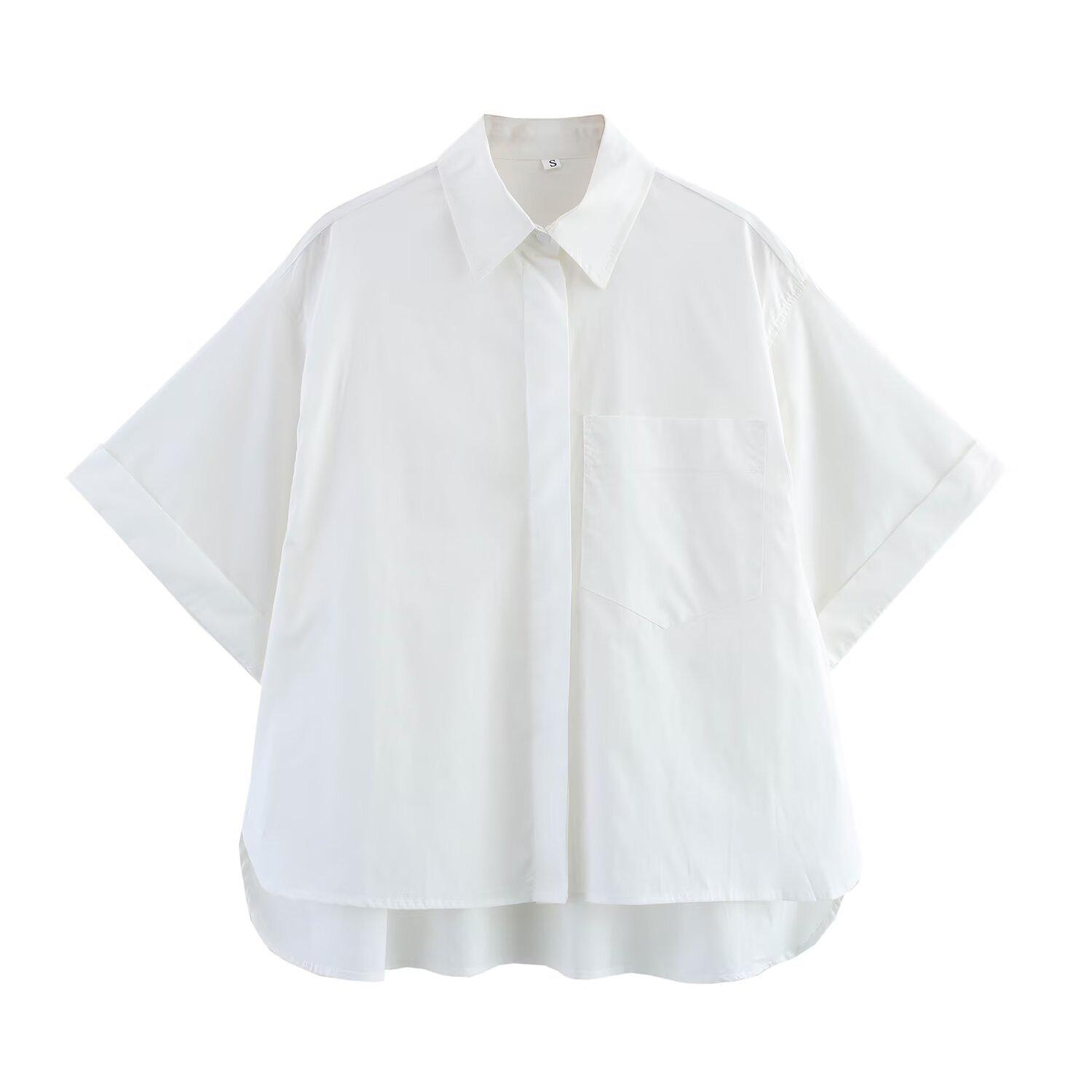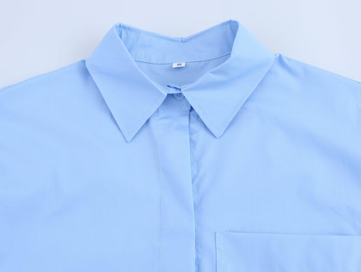 Moda Feminina Europeia e Americana Atacado 2025 Verão Novo Versátil Casual Solto Bolso Poplin Camisa para Mulheres