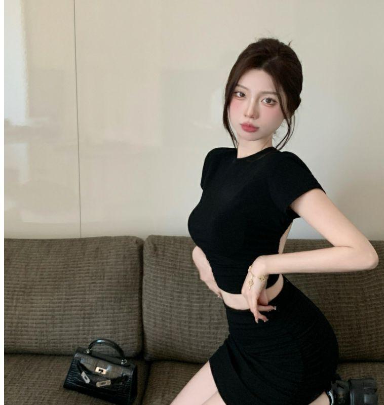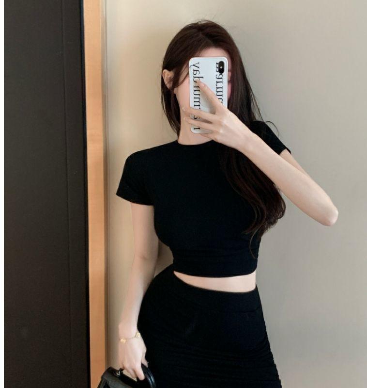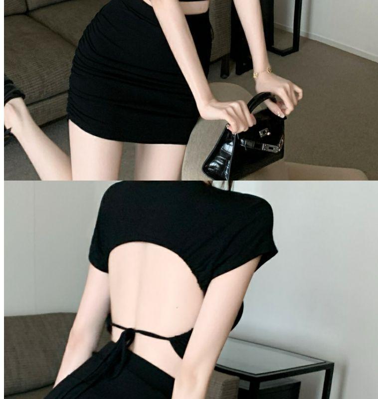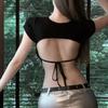 [Atacado Transfronteiriço] Camiseta Sexy Sem Costas com Alças Verão Nicho Look Emagrecedor Gola Redonda Top Curto Ins Trend