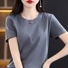 Camiseta de algodão mercerizado gola careca feminina manga curta senso de design primavera e verão camiseta popular ins estampa de desenho animado nova blusa de manga curta