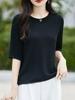 2025 Novo Verão Seda Tencel Gola Redonda Tricô Camiseta Manga Três Quartos Pulôver Texturizado Camiseta Básica para Mulheres