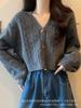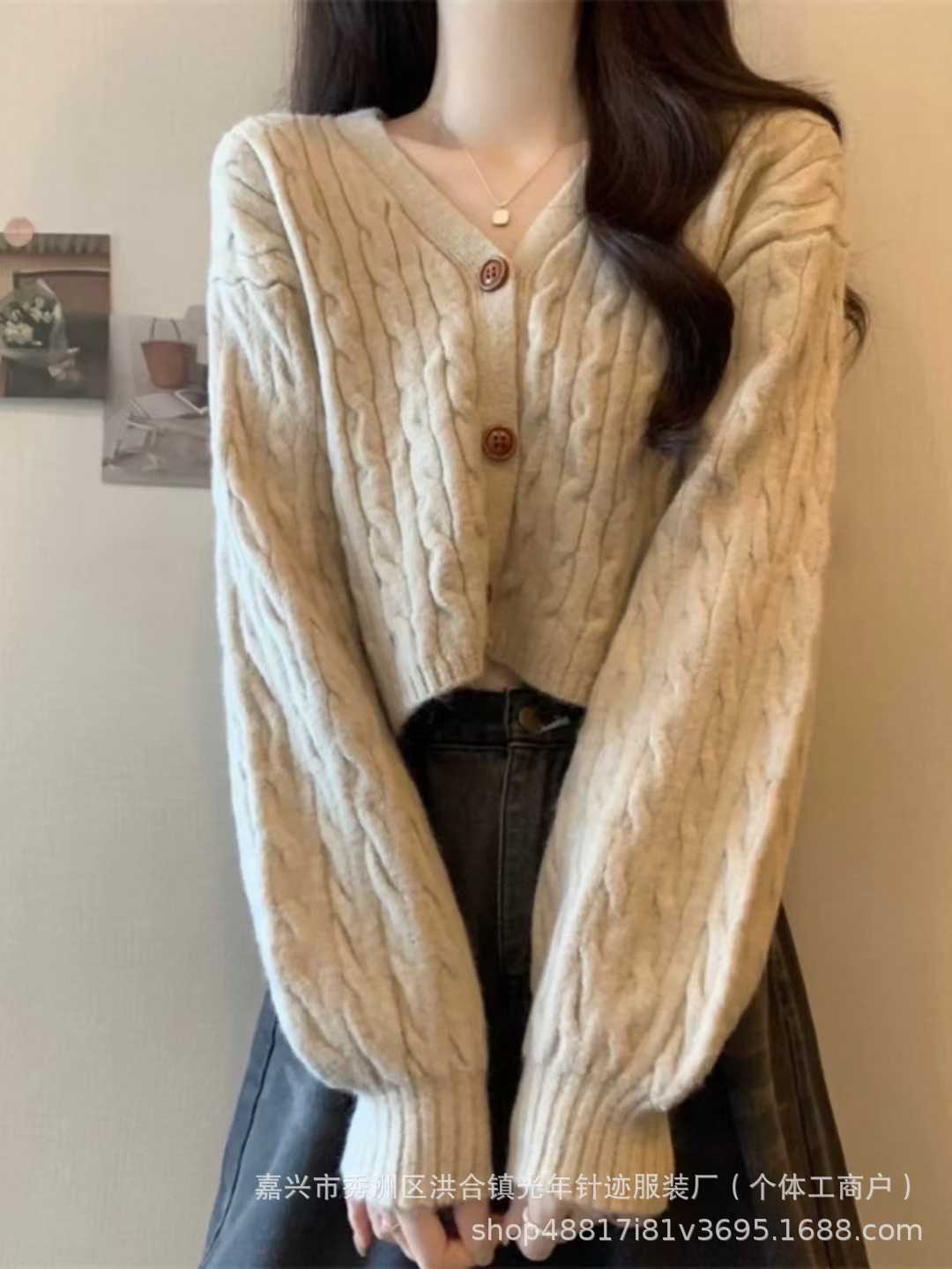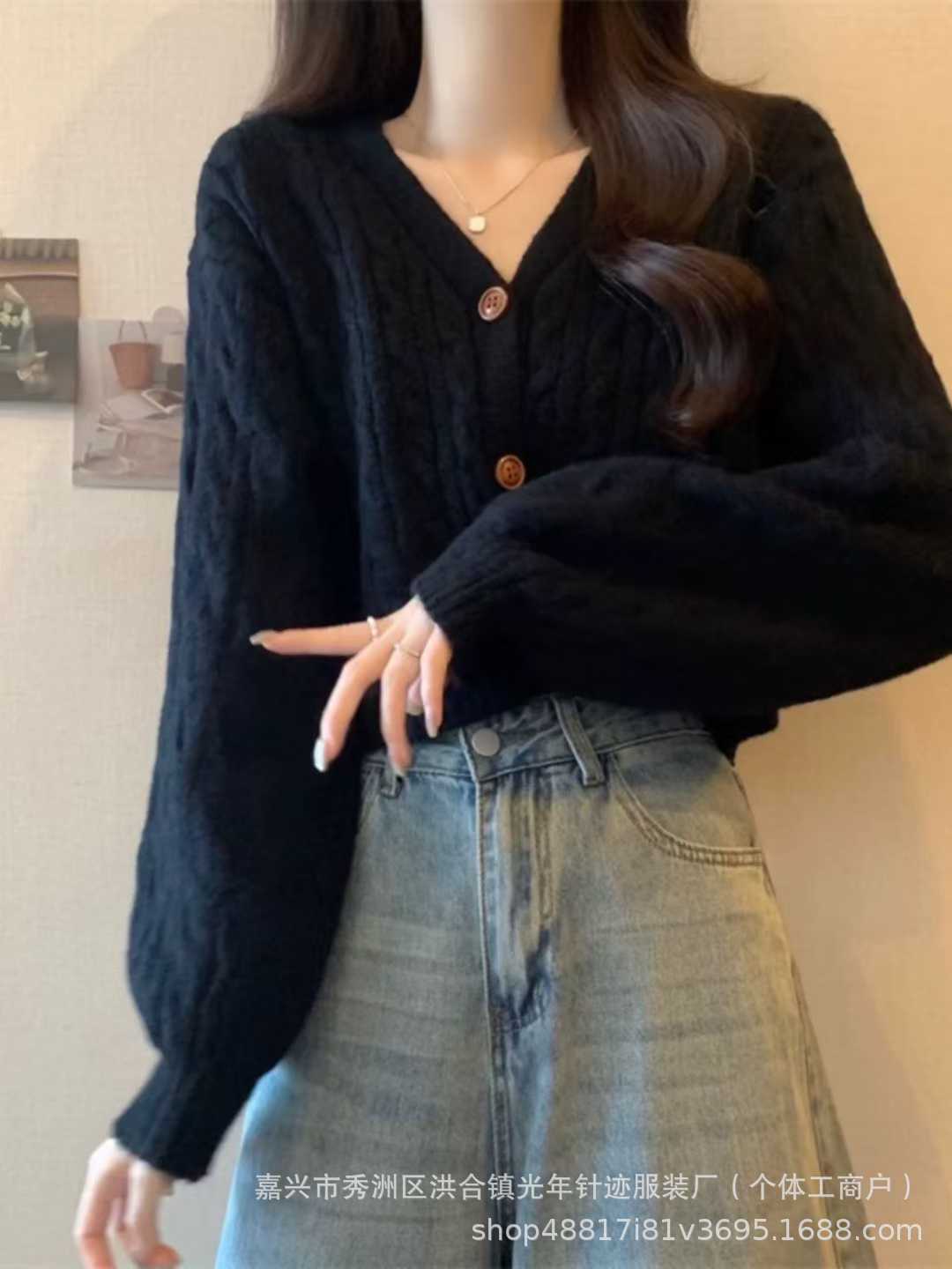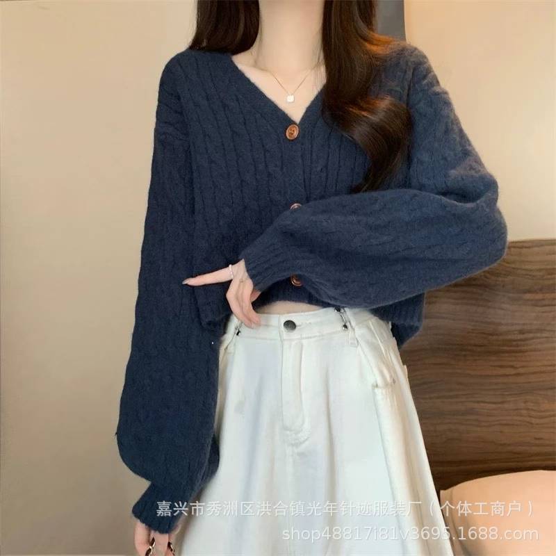Estilo Coreano 2025 Outono/Inverno Novo Retrô Decote V Design Tricô Cabo Manga Longa Cardigã Curto Casaco Suéter Mulher