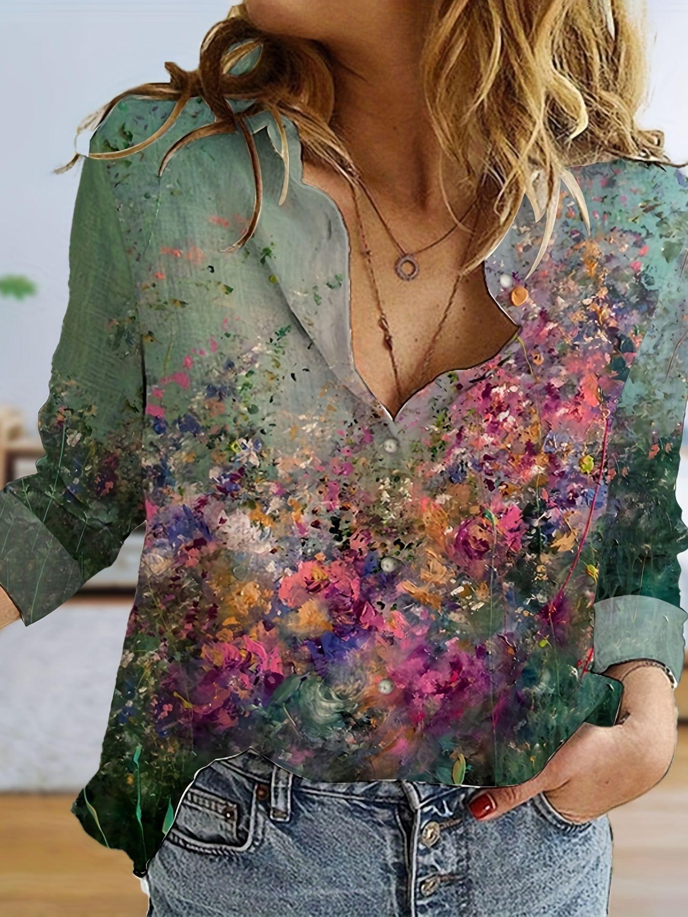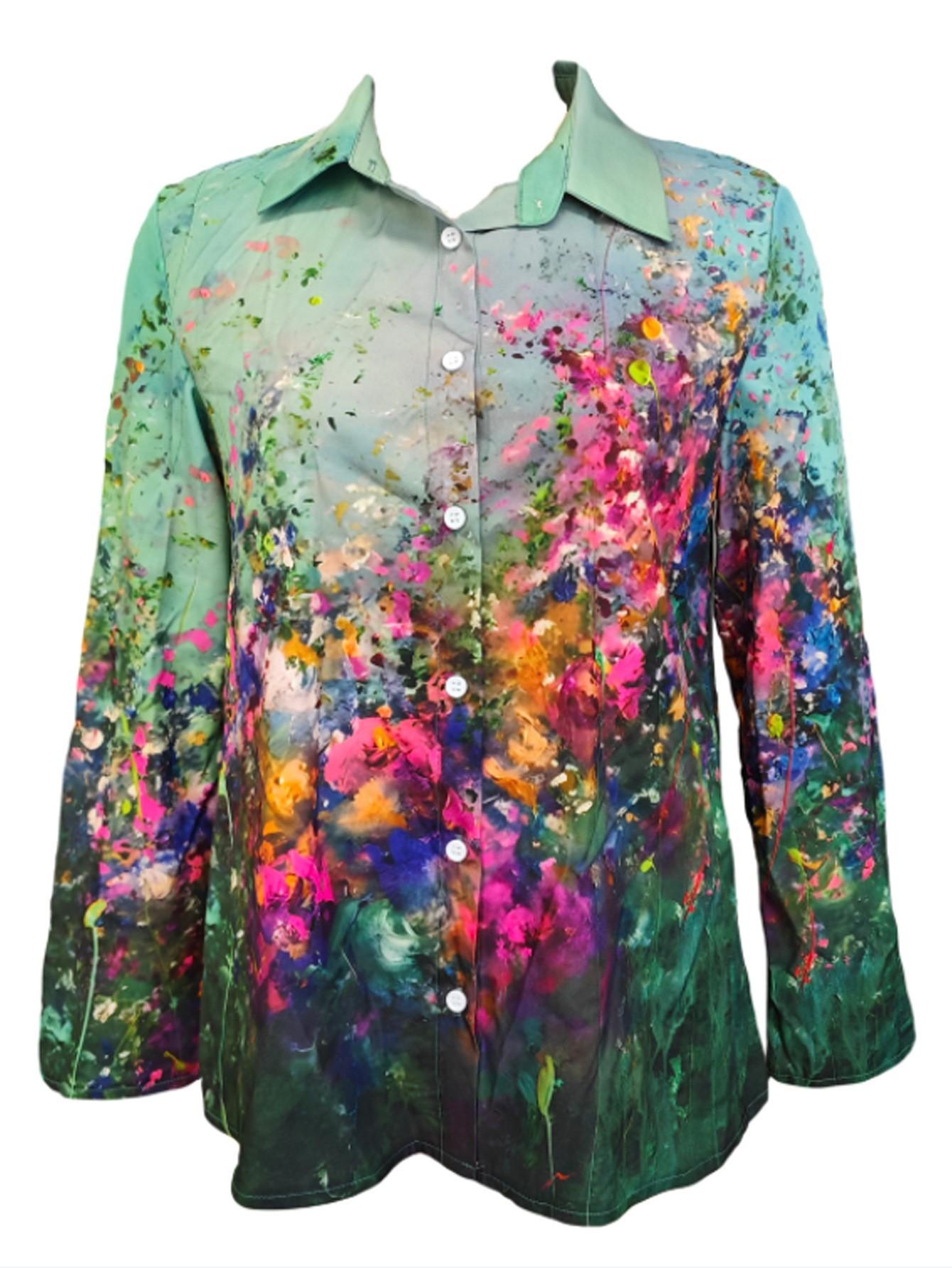 Comércio Exterior Transfronteiriço 2024 Cardigã Feminino Europeu e Americano Estampa de Flor 3D Camisa de Manga Longa Top Feminino Versátil NZ6901