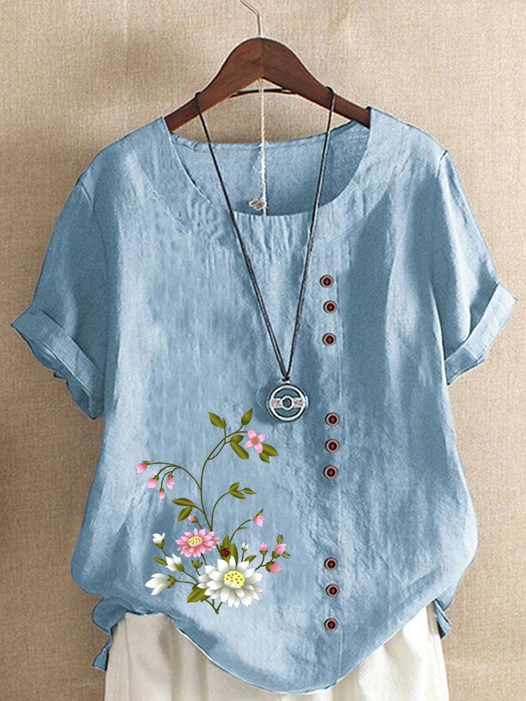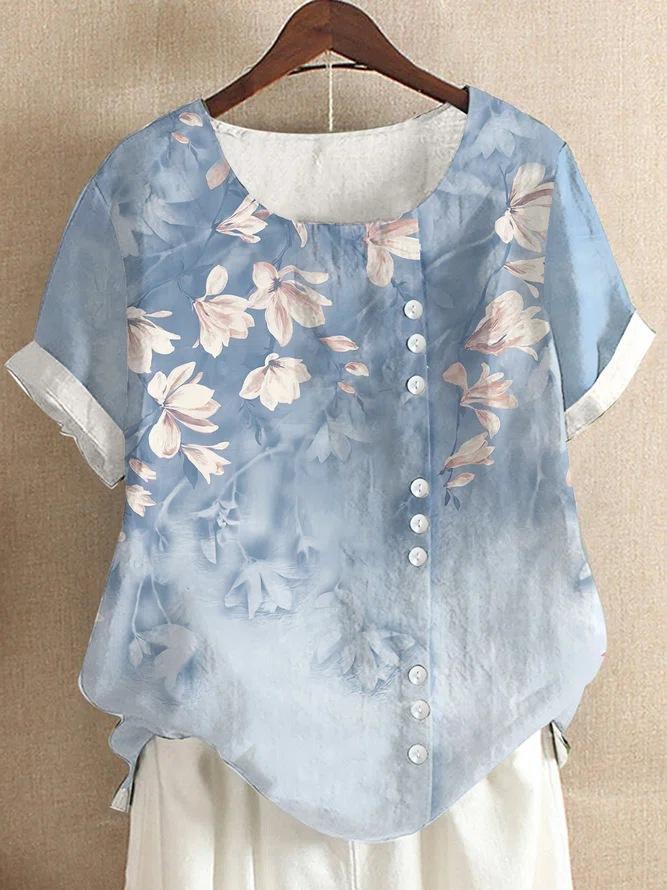 Moda Casual Feminina Primavera e Verão 2025 Amazon Novo Transfronteiriço Europeu e Americano Camisa Floral de Manga Comprida com Botões e Abertura na Barra