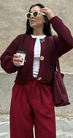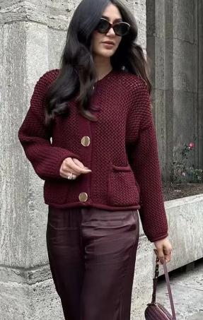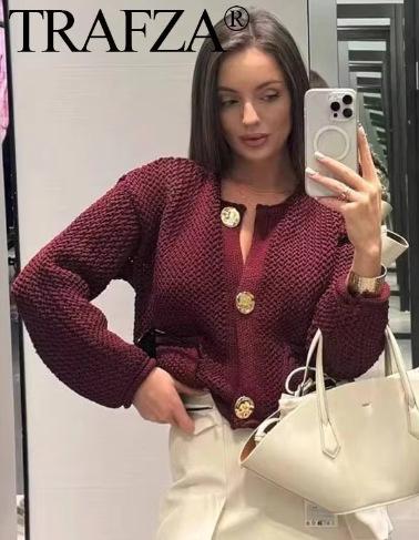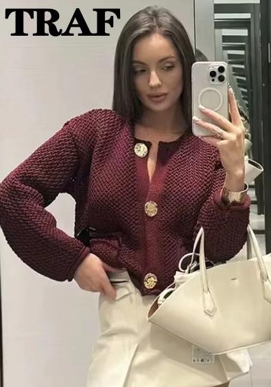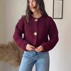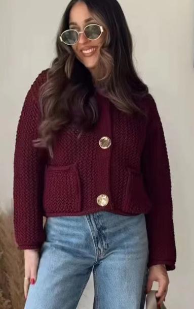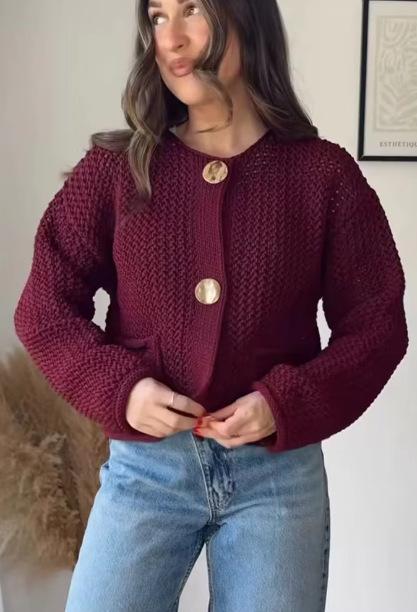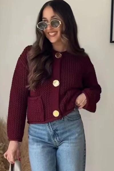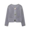 Aliexpress Popular Suéter Tricotado Jaqueta Europeu e Americano Outono e Inverno Feminino Curto Bolso Transfronteiriço Suéter de Três Botões