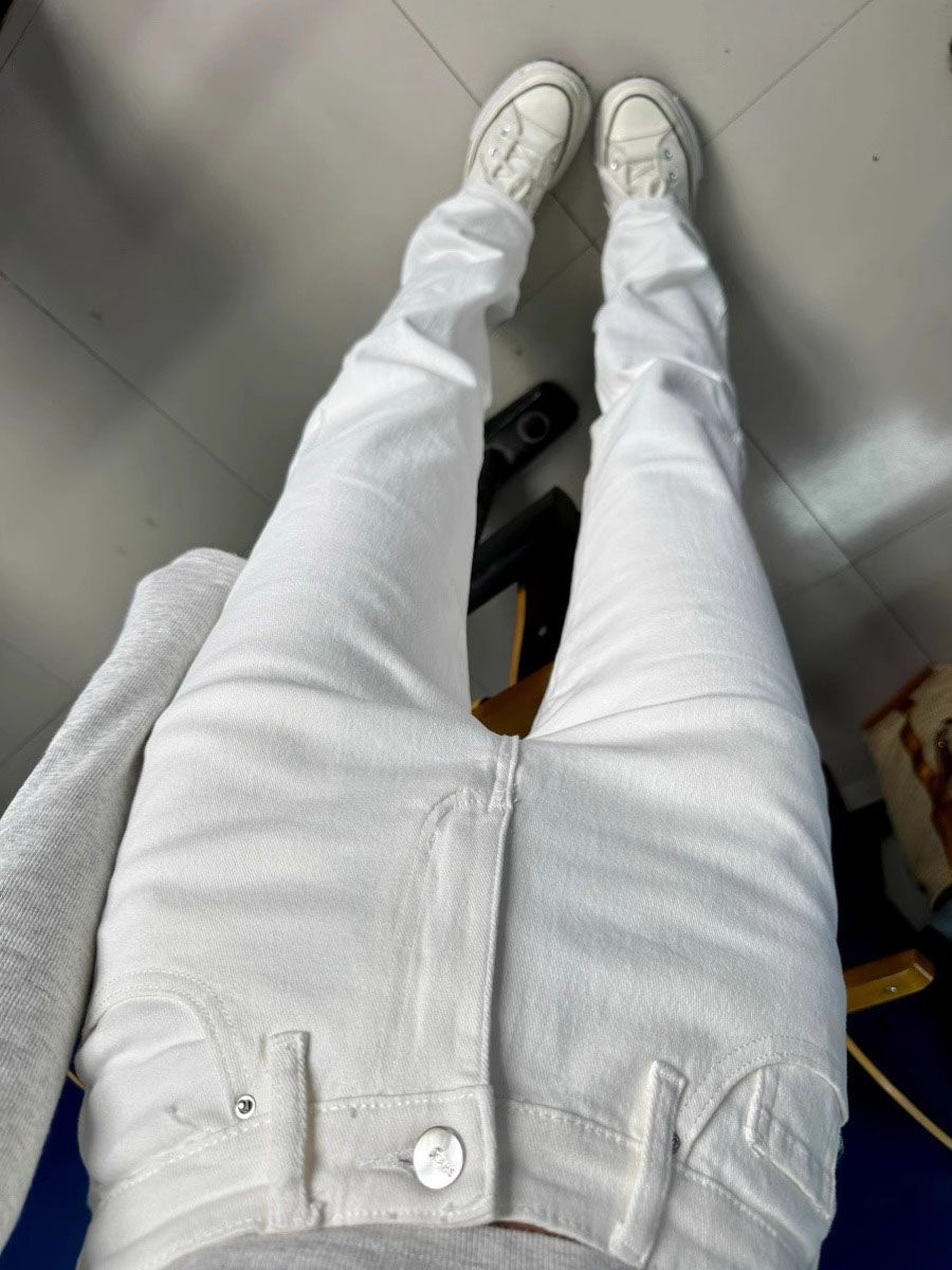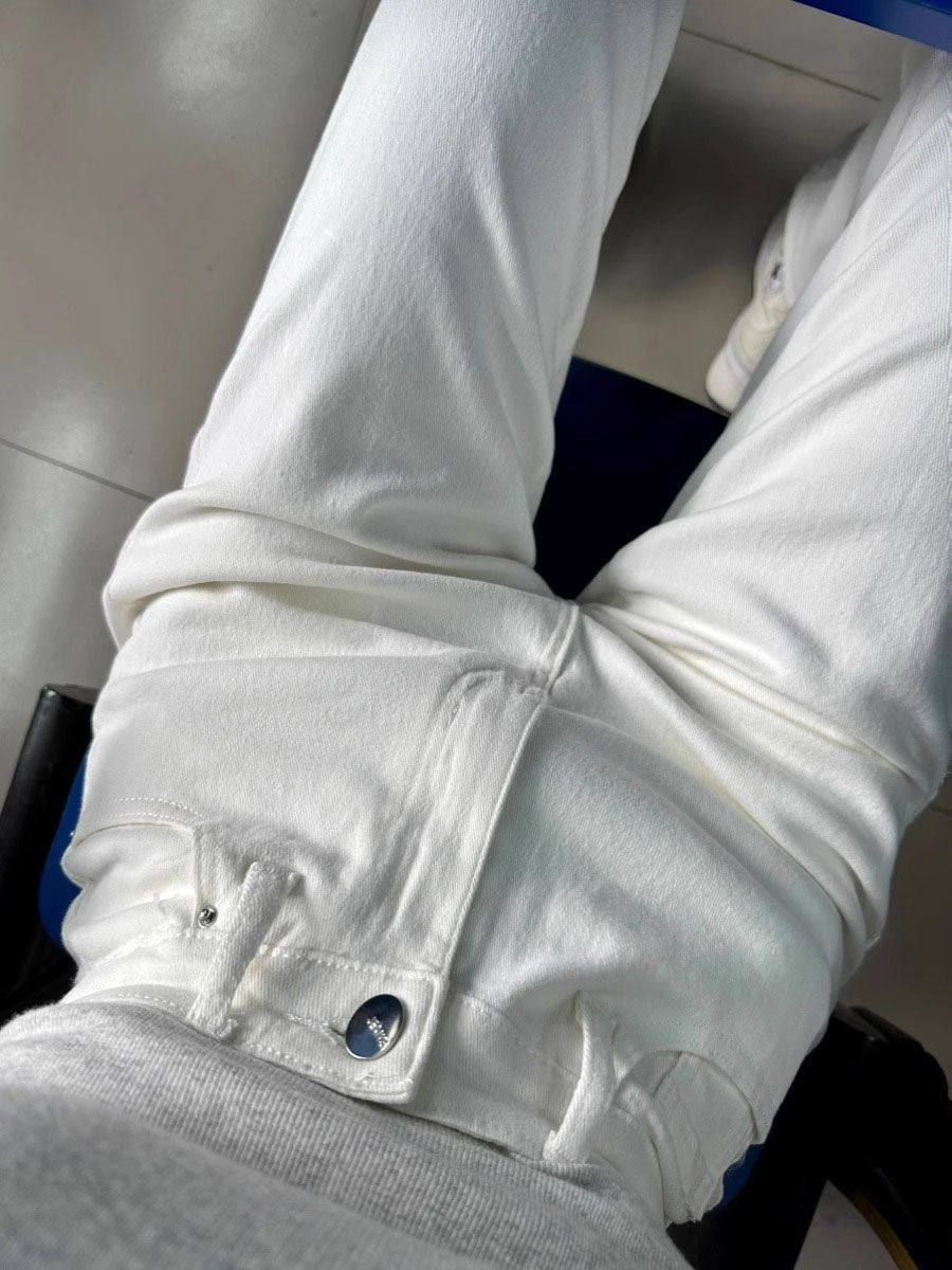 Calça Jeans Perna Larga Feminina Cintura Alta Branca 2024 Verão Novo Slim-fit Mergulhado Solto Estreito Calça Reta
