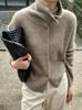 Cardigã Tricotado de Gola Alta para Mulheres, Europeu High-End Simples Solto Fio Grosso Primavera Casaco Suéter Base Outono Trendy