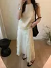 Regata Torcida Estampada Floral Mista de Linho + Saia de Cintura Estilo Férias de Verão 2025 Estilo High-End