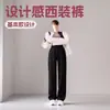 Calças de Terno Pretas Femininas 2025 Primavera Senso de Design Caimento Solto Perna Larga Cintura Alta Casual Perna Reta Calças Compridas