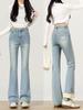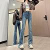 Jeans Vintage de Cintura Alta com Borda de Pele Micro-flare Feminino Outono Novo Stretch Justo Alto Slim-fit Calças Trompete Ferradura