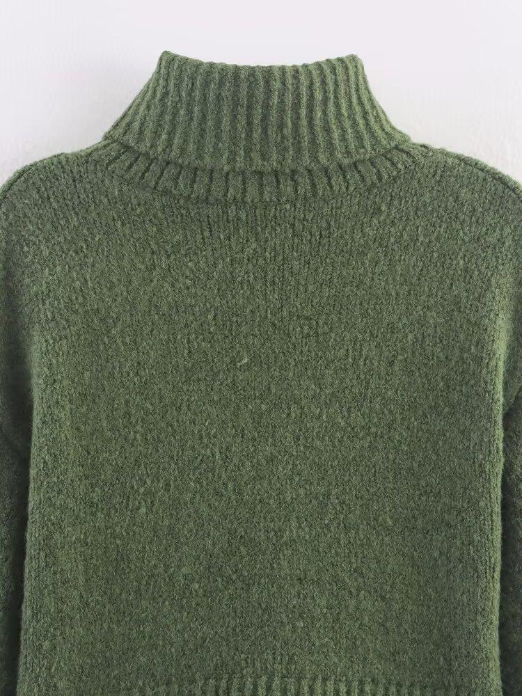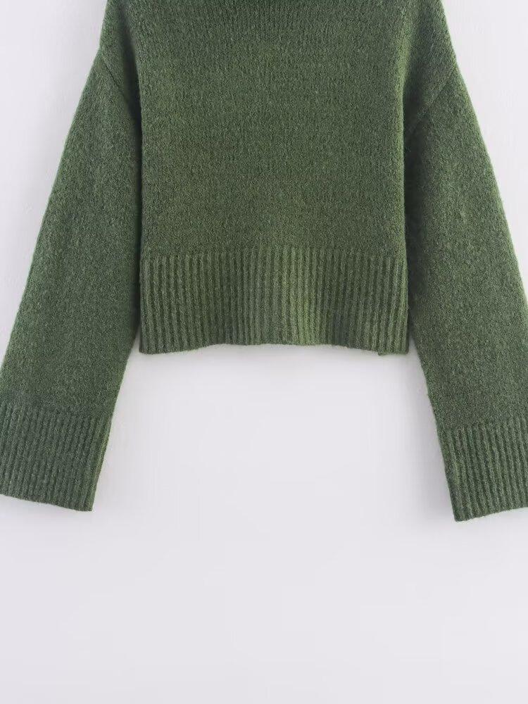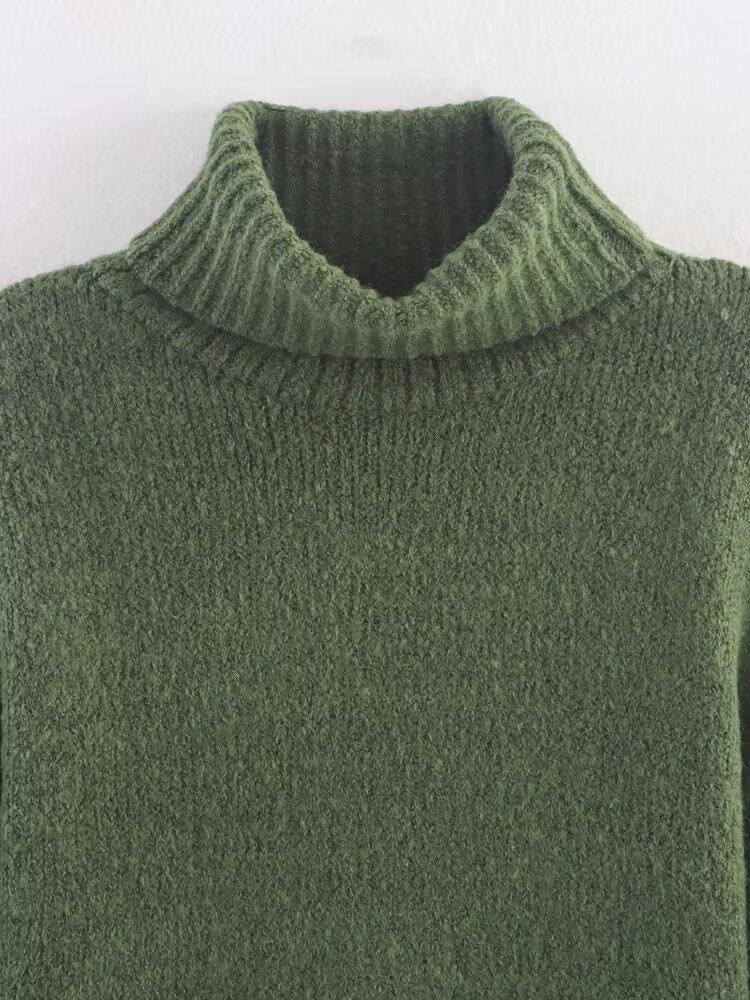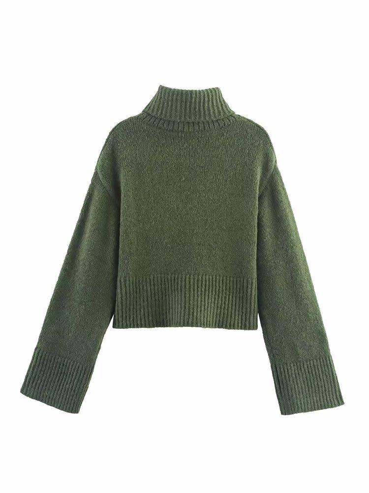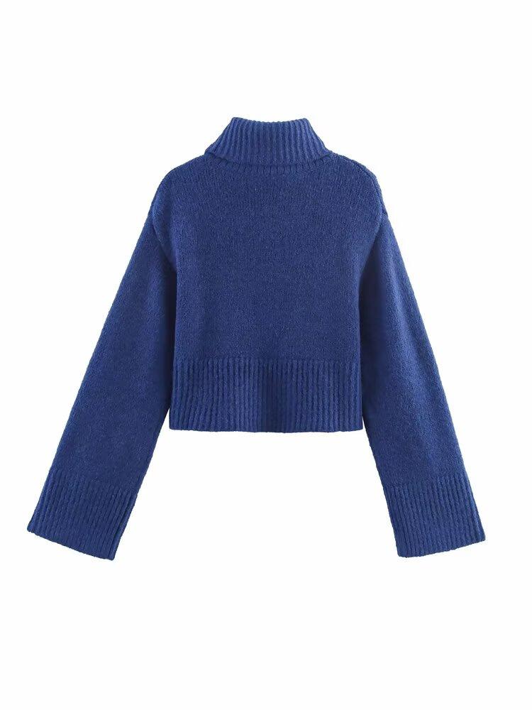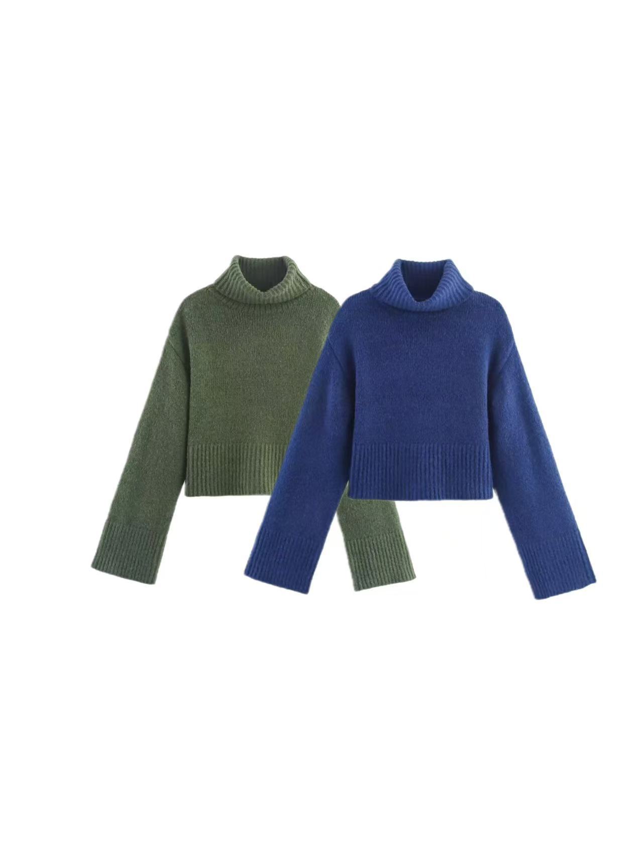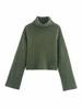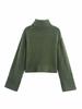 Amazon Comércio Exterior Transfronteiriço Vestuário Feminino 2025 Outono Novo Confortável Versátil Cor Sólida Tricot Gola Alta Manga Longa Suéter Curto