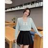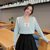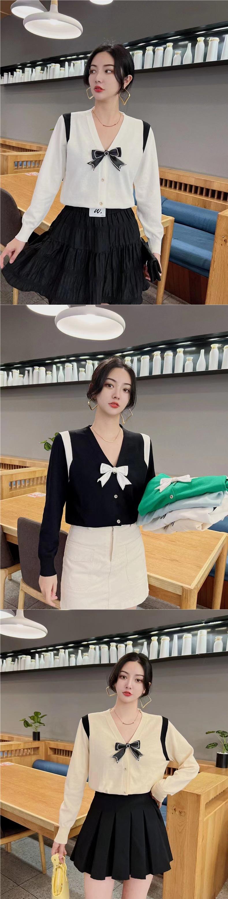 Ponto Comércio Exterior Transfronteiriço Outono Novo Top Tricotado Feminino Nicho Versátil Costurado Slim Decote V Emagrecimento Suéter Tricotado