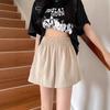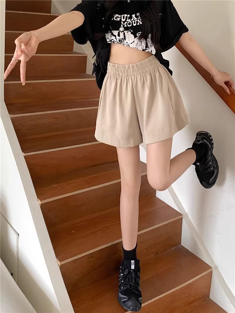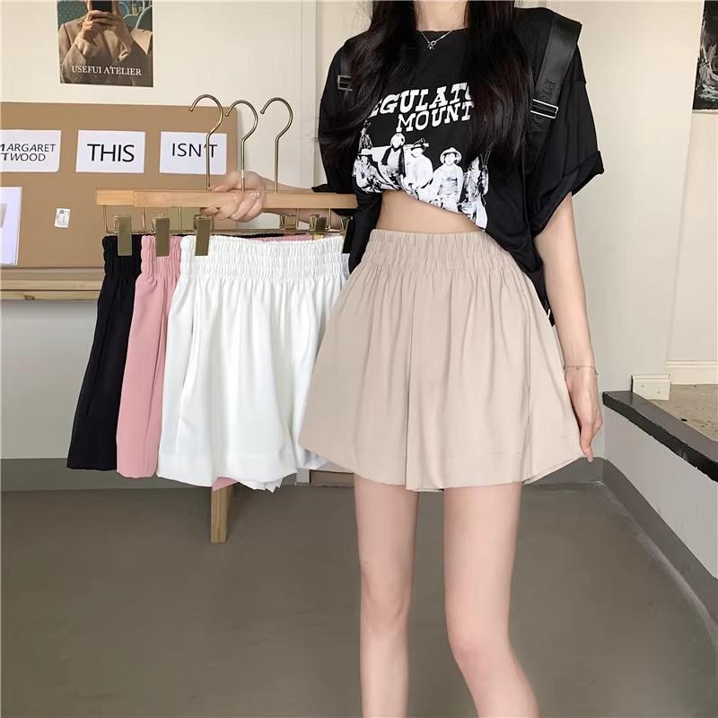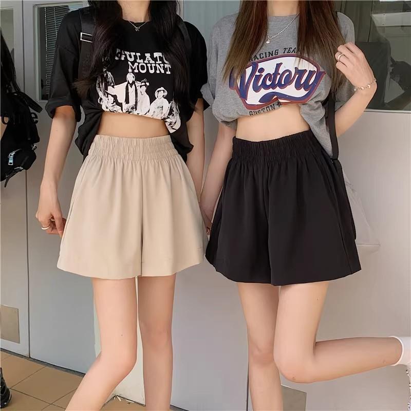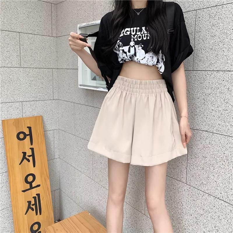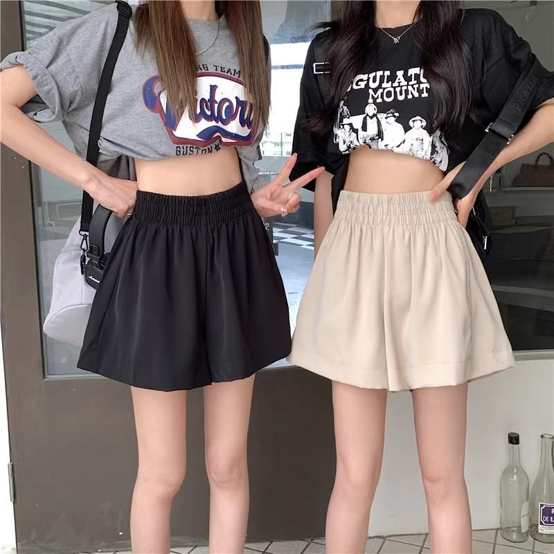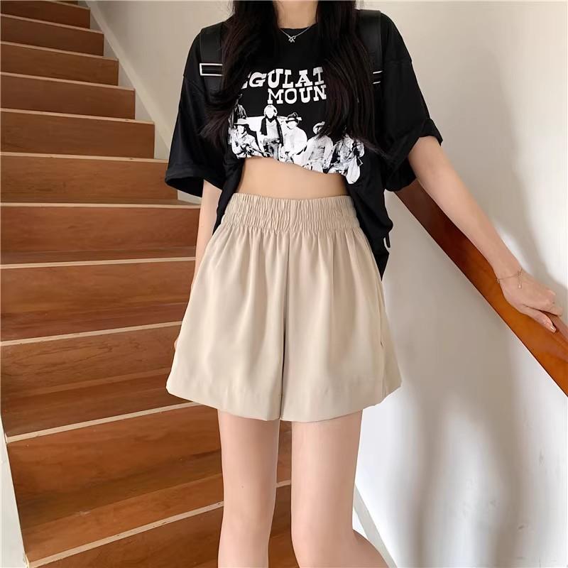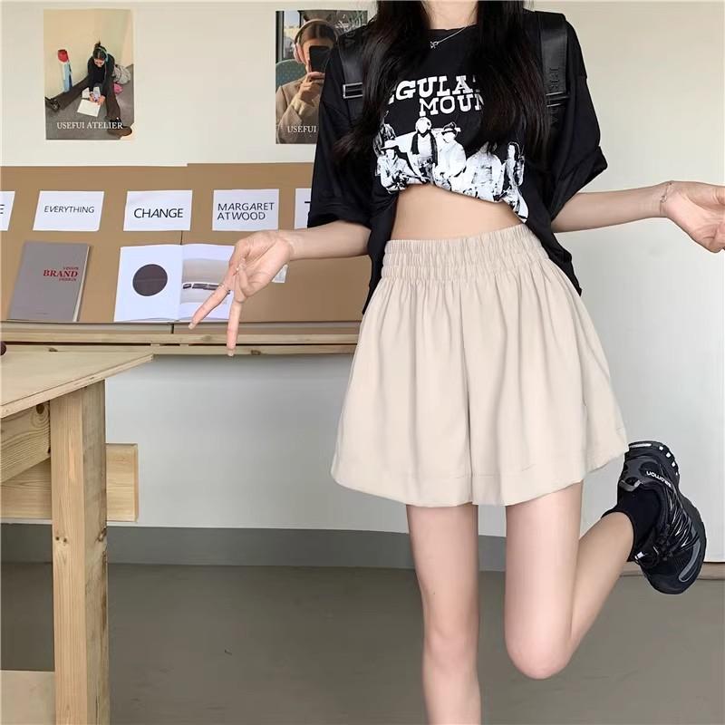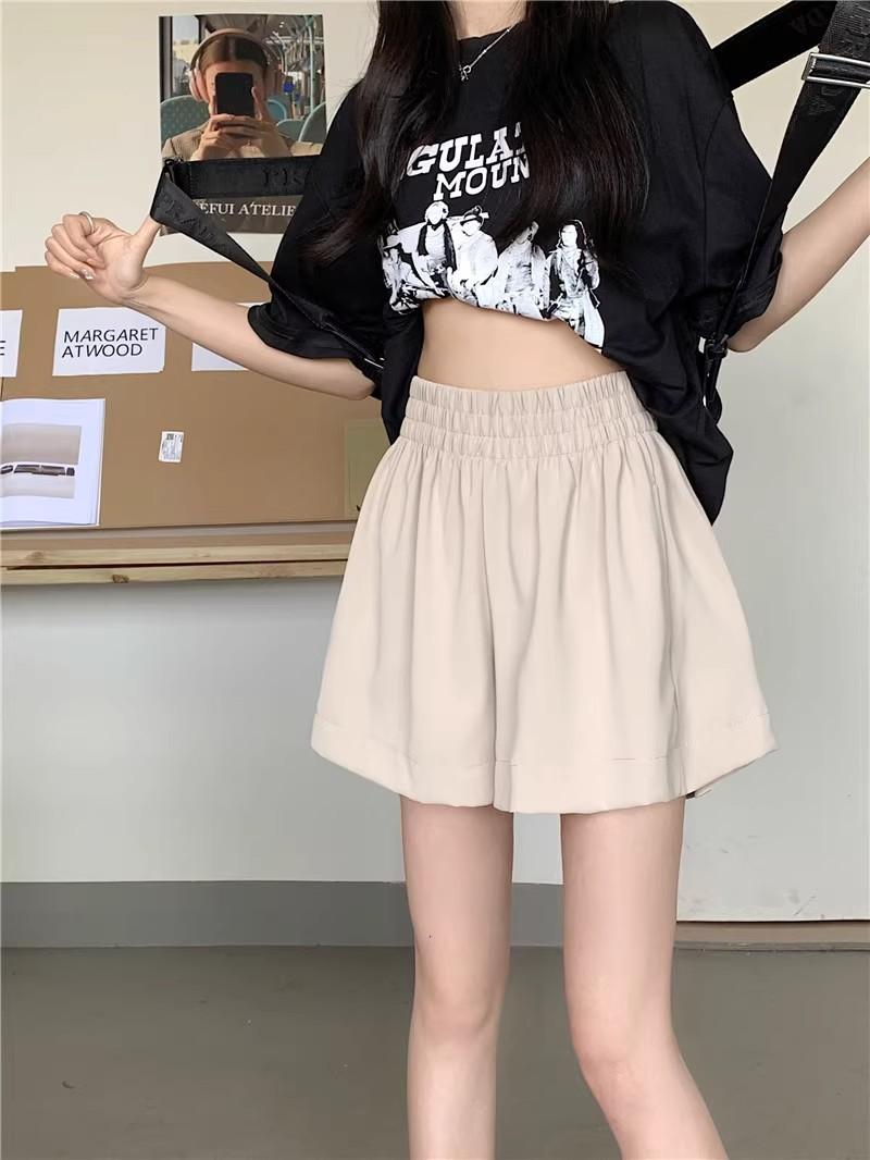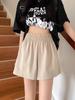2025 Cor Sólida Verão Novo Cintura Alta Solto Emagrecimento Hot Pants Mulheres Moda Coreana Casual Perna Larga A-Line Shorts Mulheres