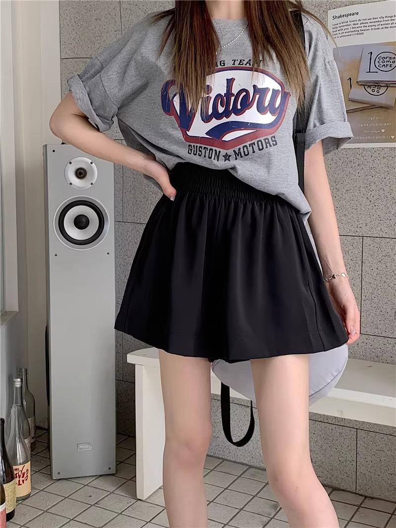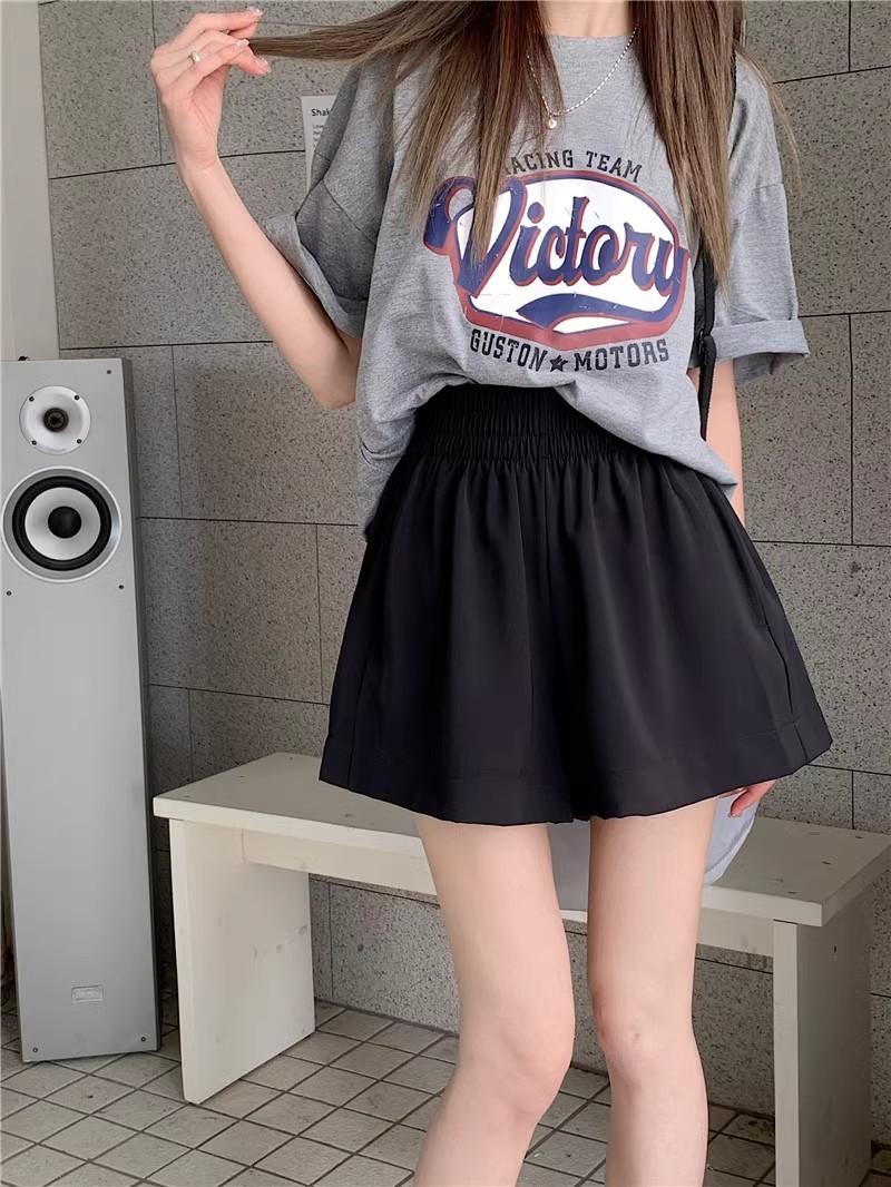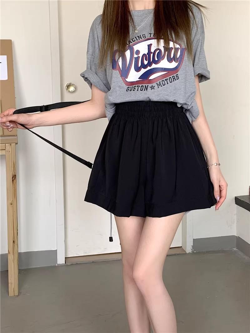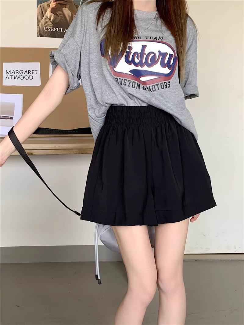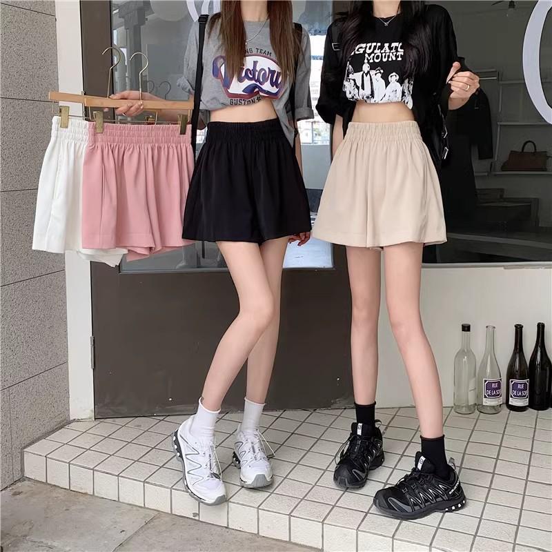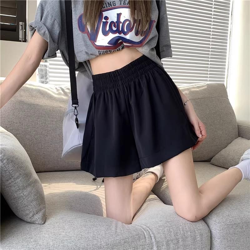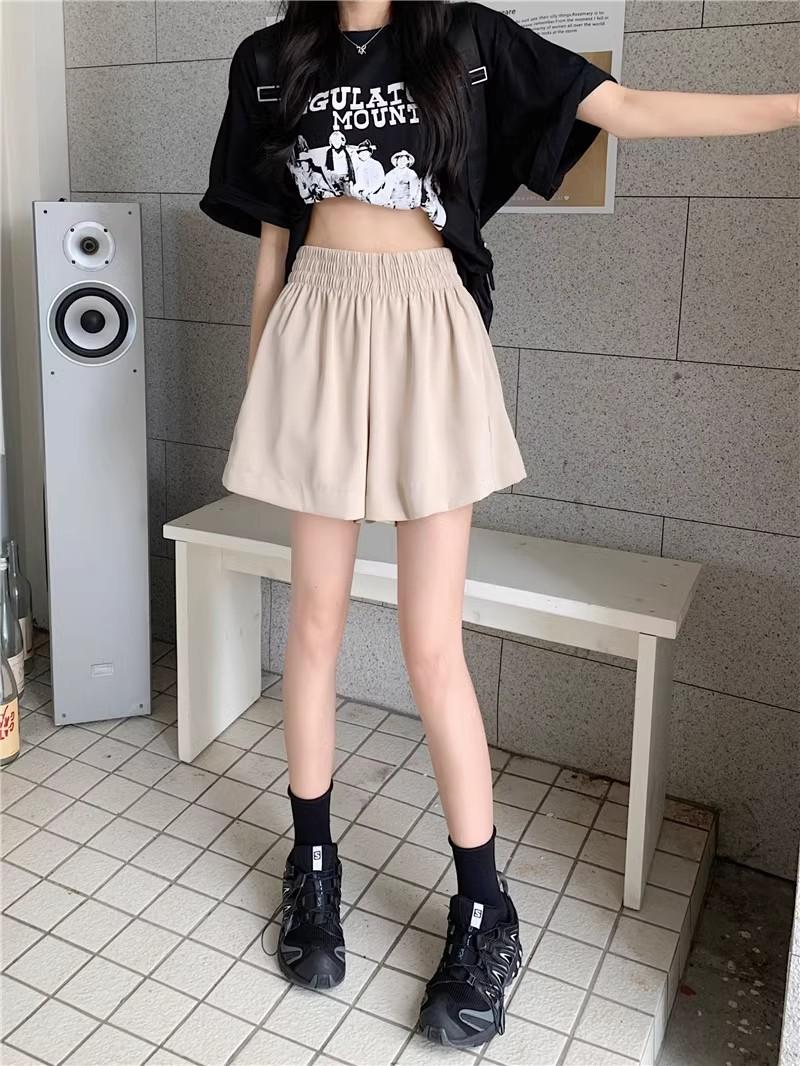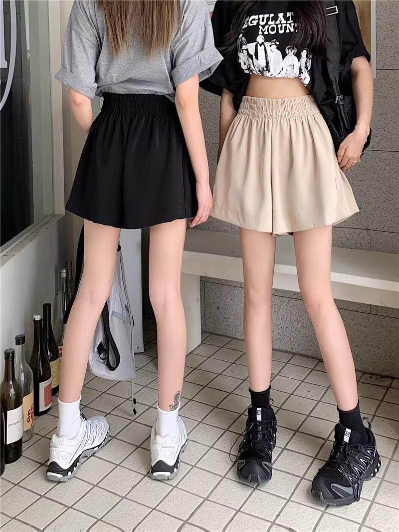 2025 Cor Sólida Verão Novo Cintura Alta Solto Emagrecimento Hot Pants Mulheres Moda Coreana Casual Perna Larga A-Line Shorts Mulheres