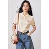 Polo de Tricô Azul de Alta Qualidade Coreano de Manga Curta Camiseta Feminina 2025 Verão Novo Top de Manguinha Voadora