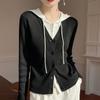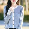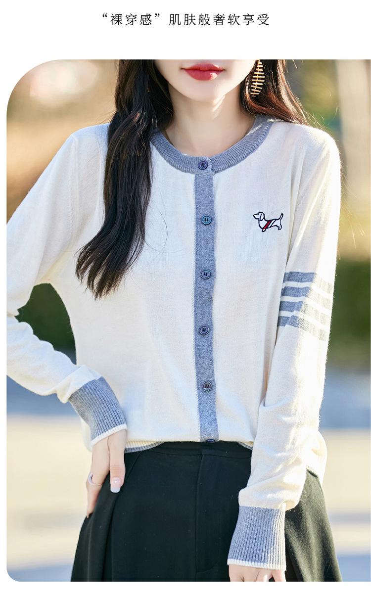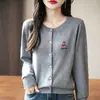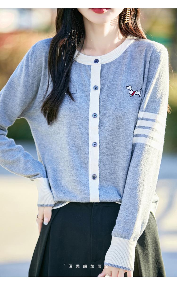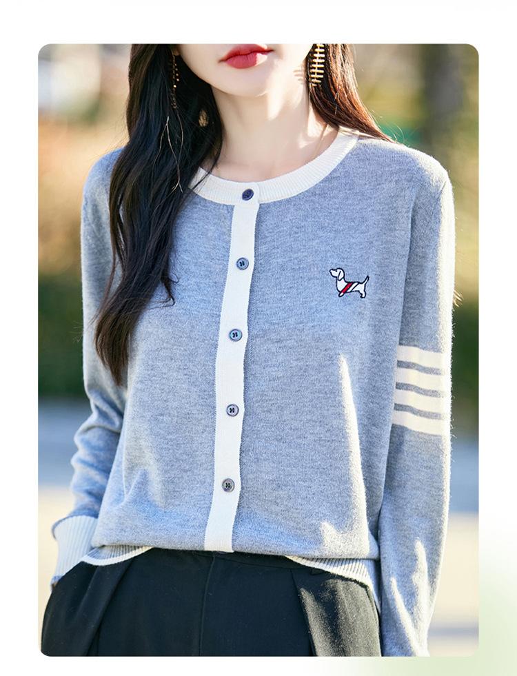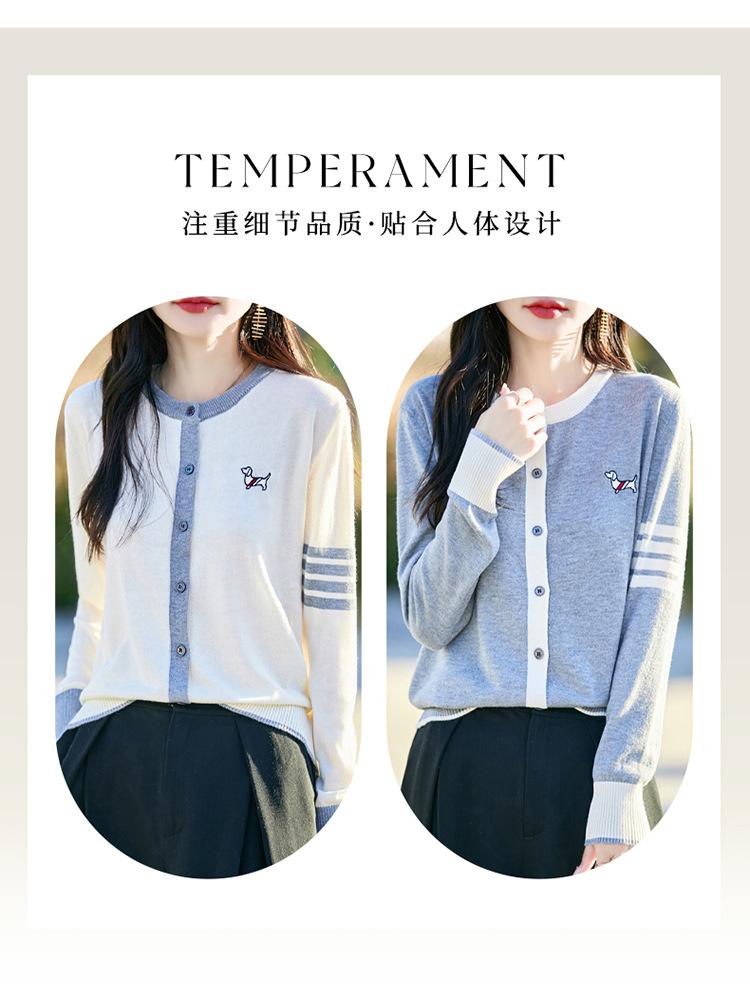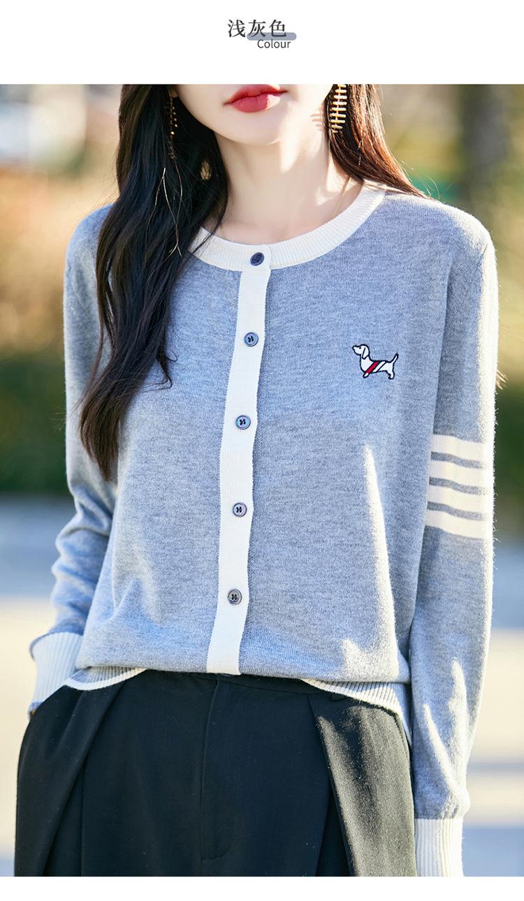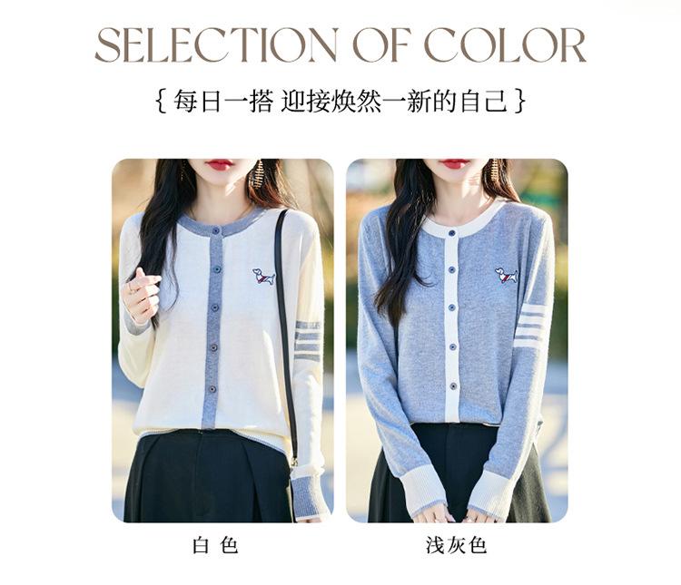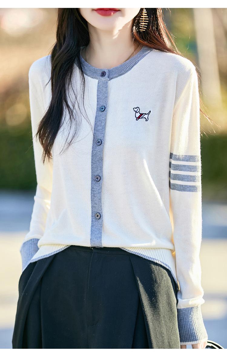 Novo Casaco Tricotado de Lã Penteada com Gola Careca e Cardigã Combinando Cores com Bordado de Cachorrinho Solto para Mulheres Primavera e Verão 2025