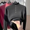 Top de Malha Tricotada Falso de Duas Peças 25 Novo Outono e Inverno Malha de Contraste Camisa de Base 100% Lã Pura Fashion e Versátil