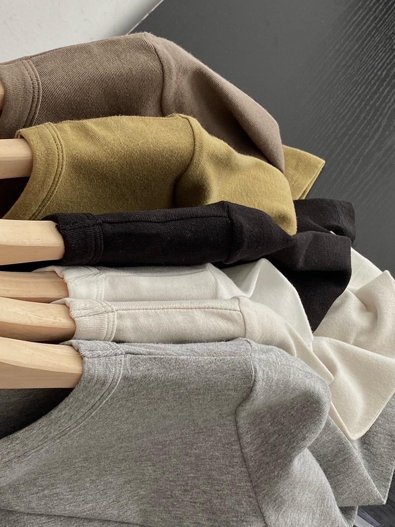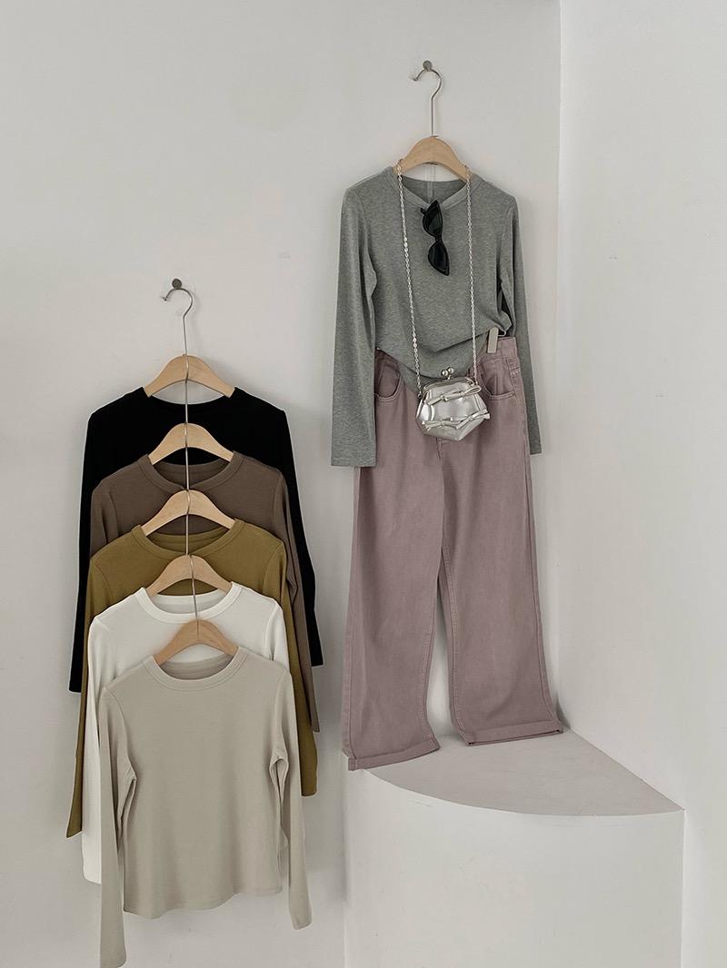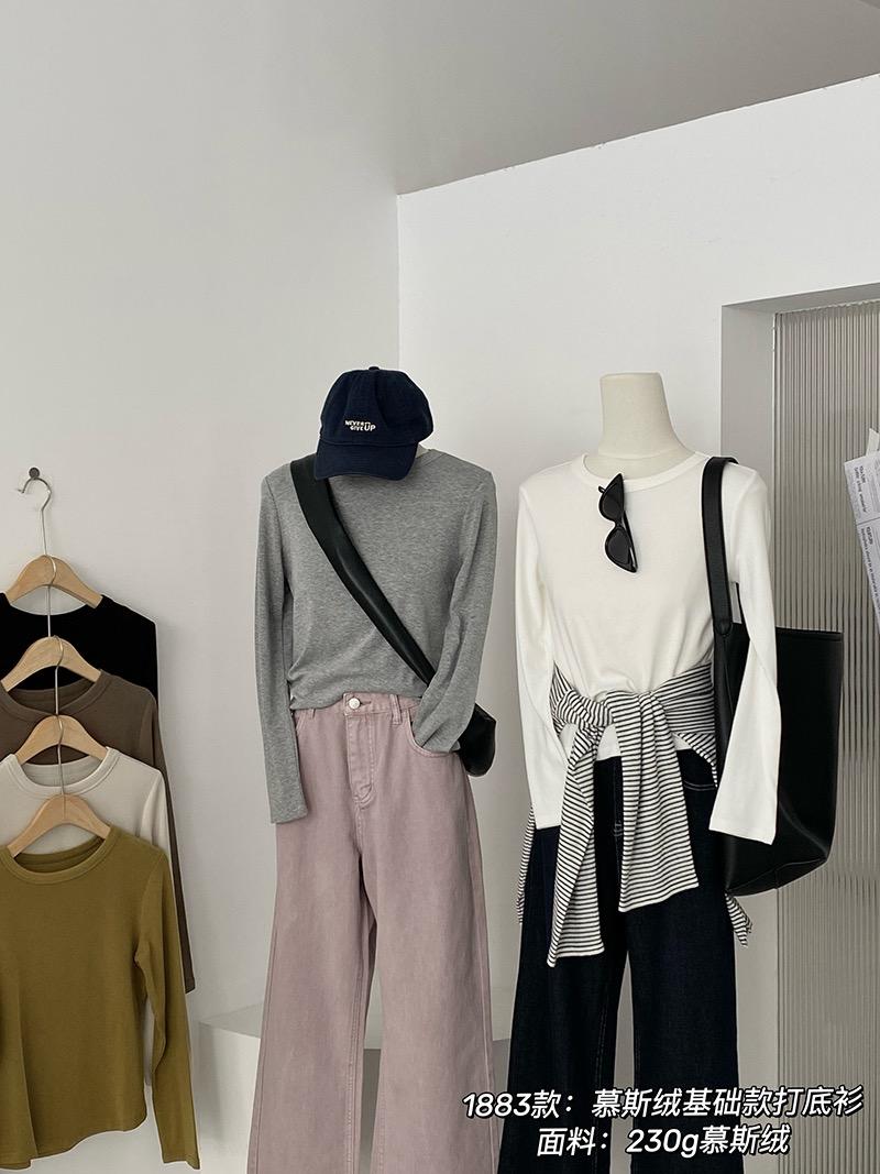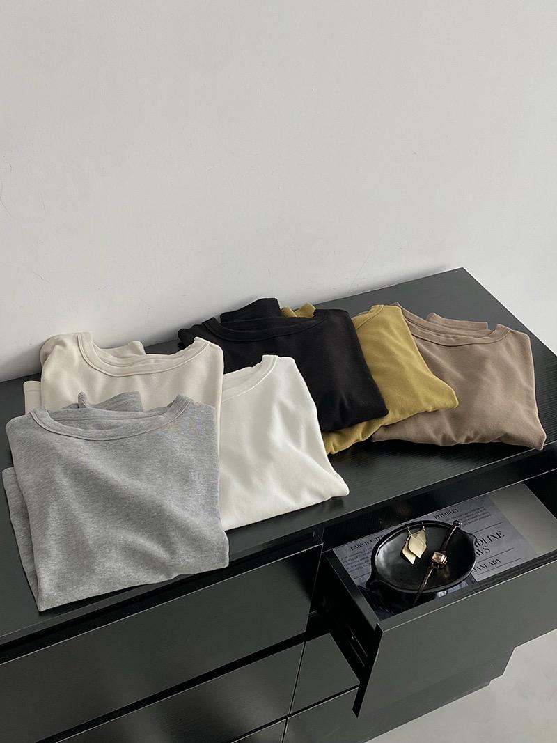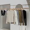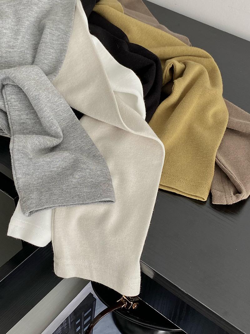 2025 Início do Outono Novo Estilo Coreano Ombro Reto Alta Elasticidade Emagrecimento Versátil Camiseta Gola Redonda Camiseta Base Cor Sólida Tom Terroso