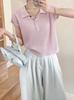 Verão Novo Design Lapela Botão Colorido Tricotado Manga Curta Estilo Coreano Emagrecimento e Cobertura de Carne Temperamento Versátil Top para Mulheres