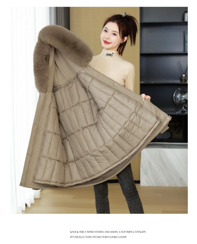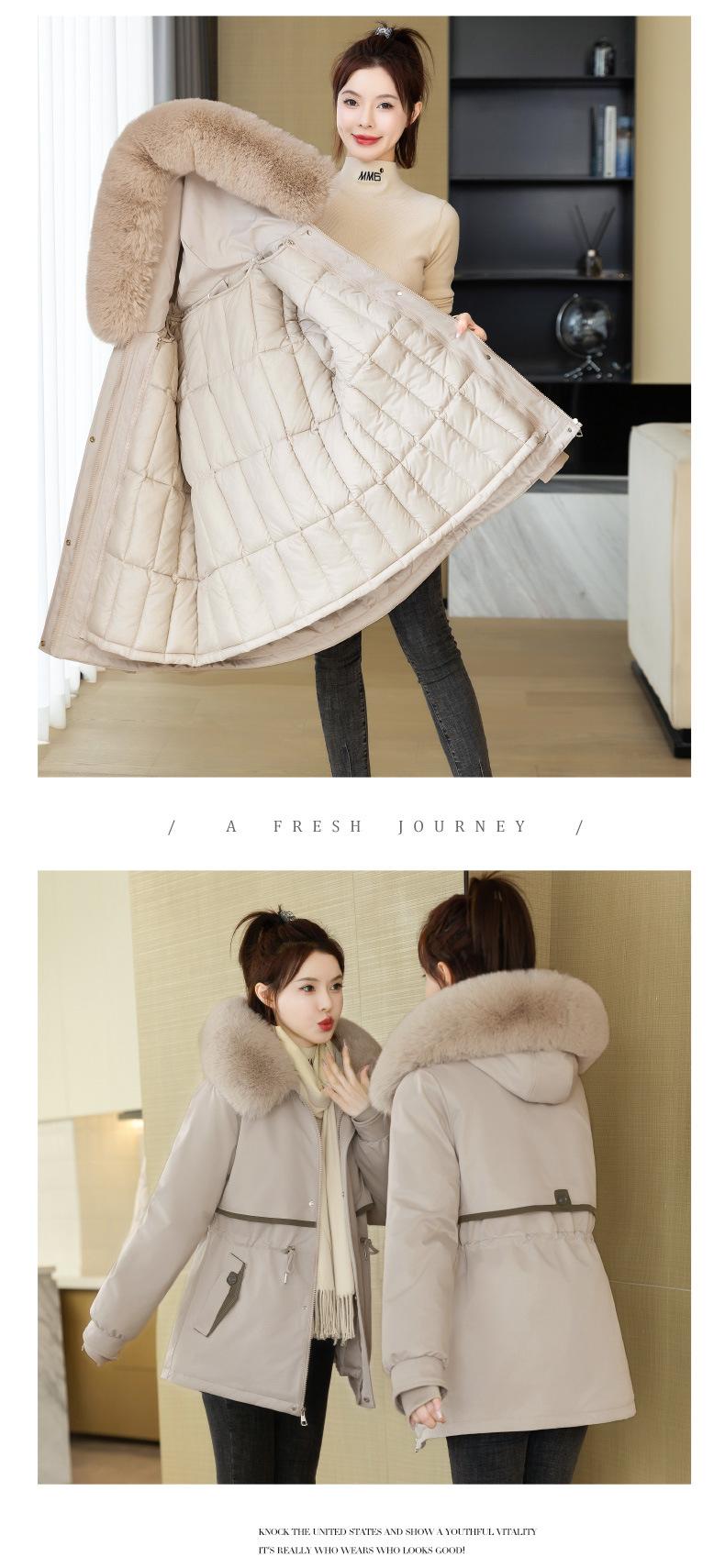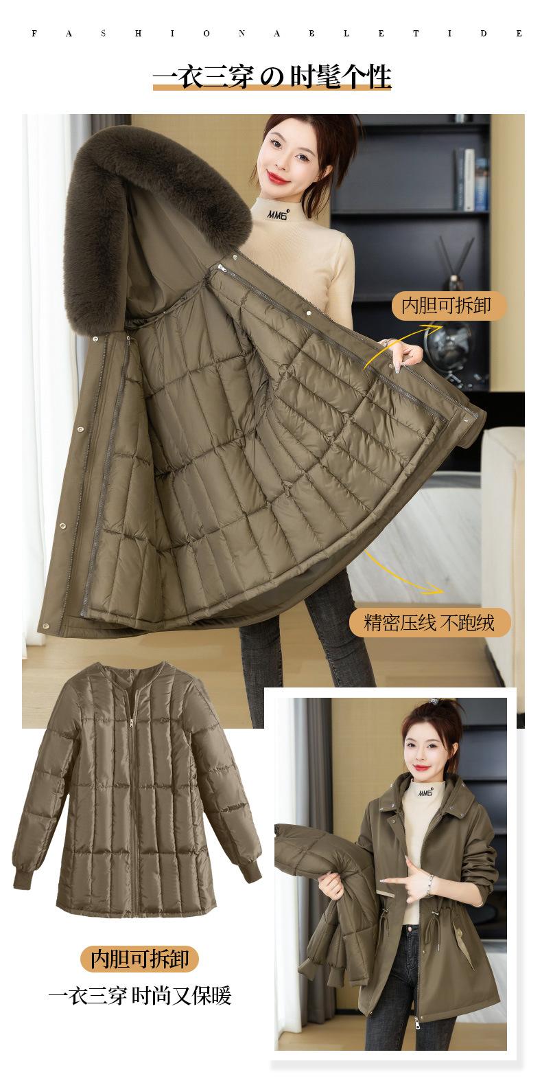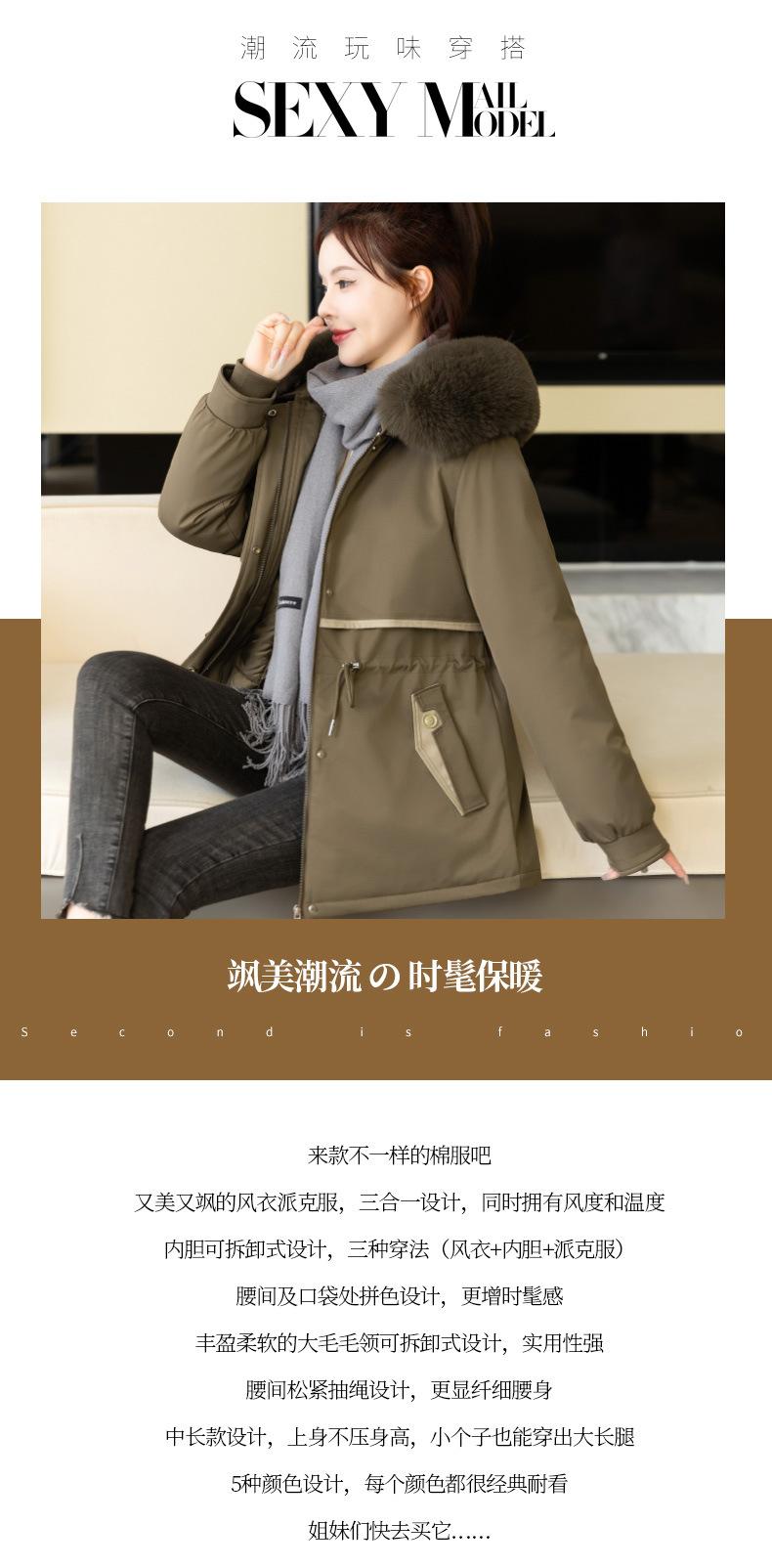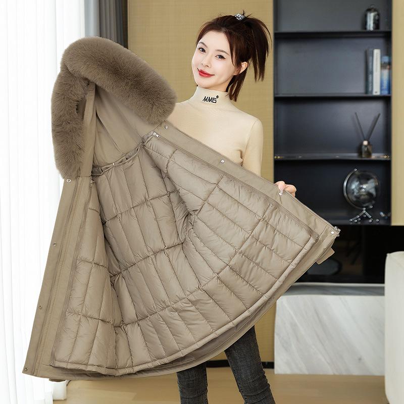 2025 Novo Casaco Parka de Inverno Quente Gola de Pele Removível Algodão Versátil Elegante Casaco Feminino Jaqueta Três em Um