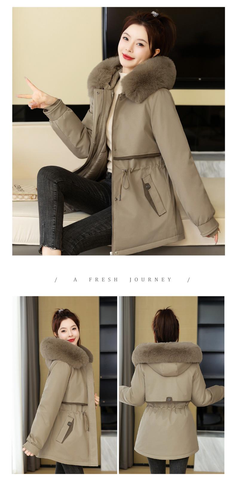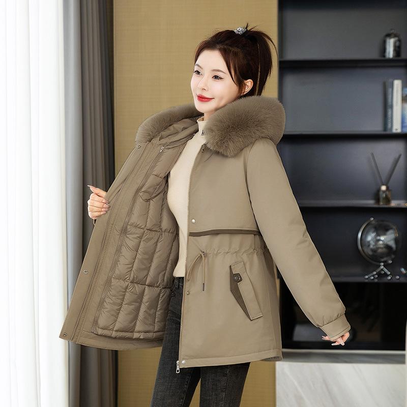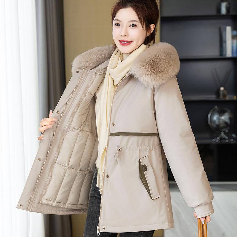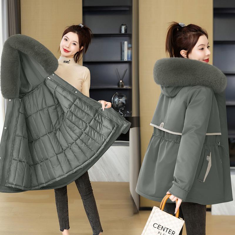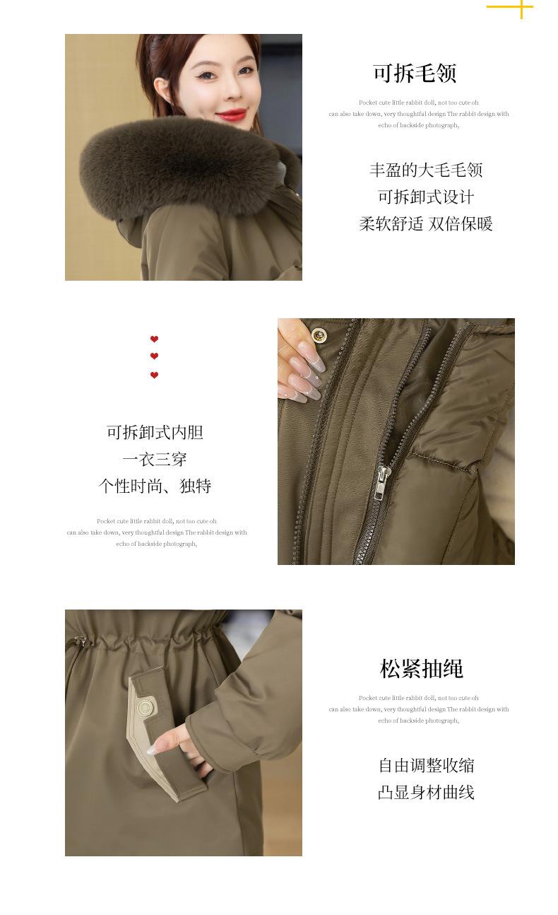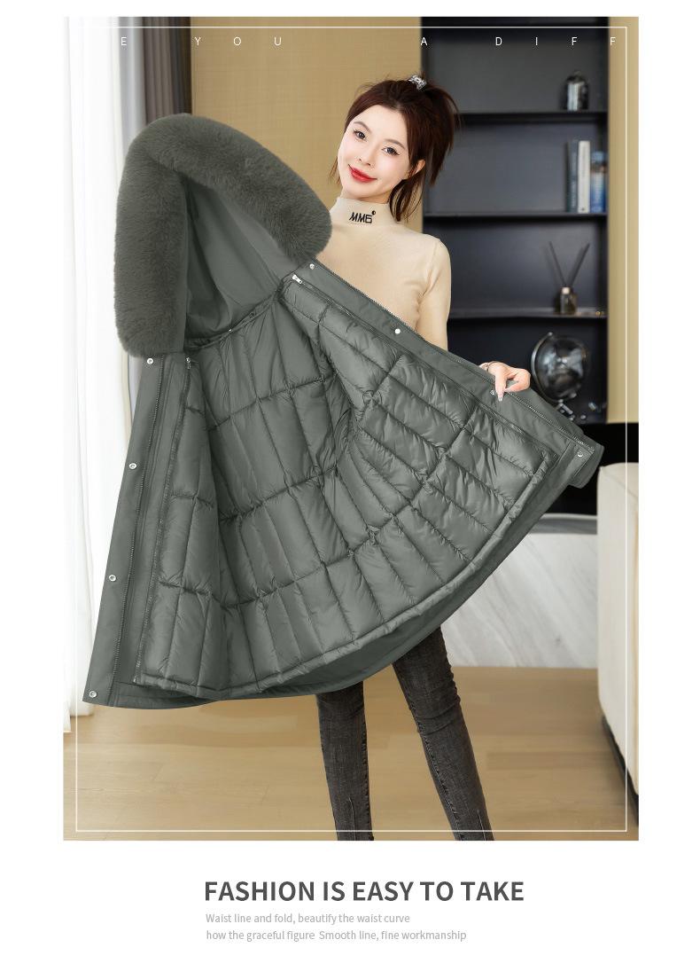 2025 Novo Casaco Parka de Inverno Quente Gola de Pele Removível Algodão Versátil Elegante Casaco Feminino Jaqueta Três em Um