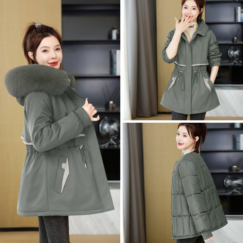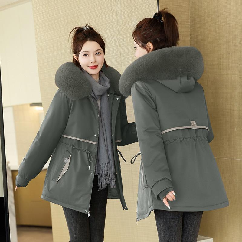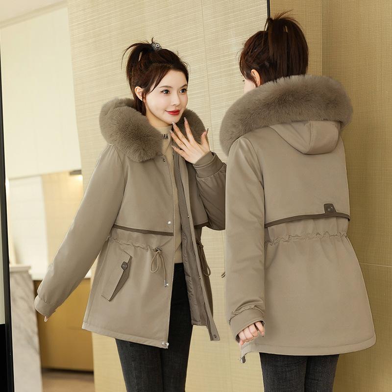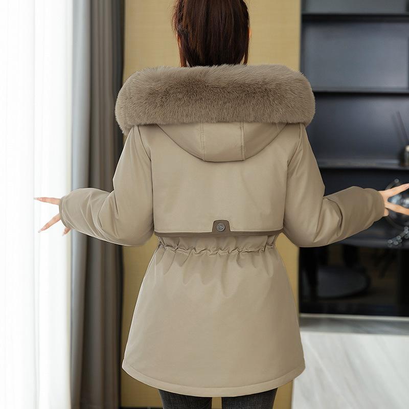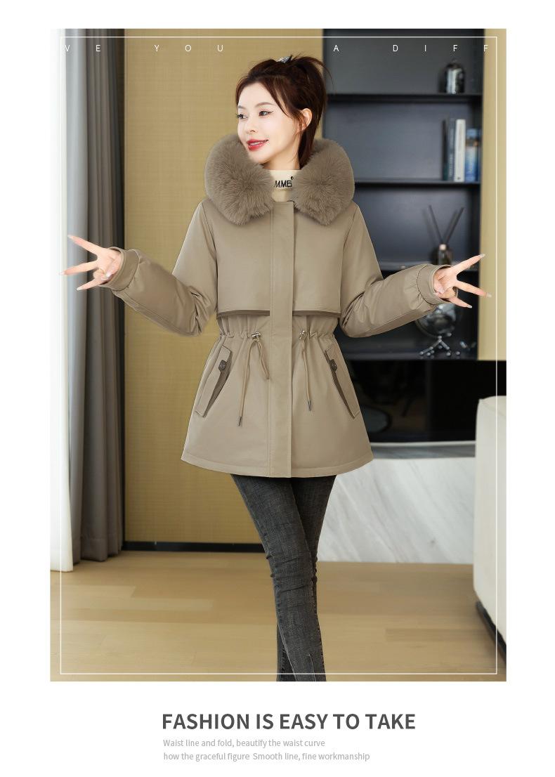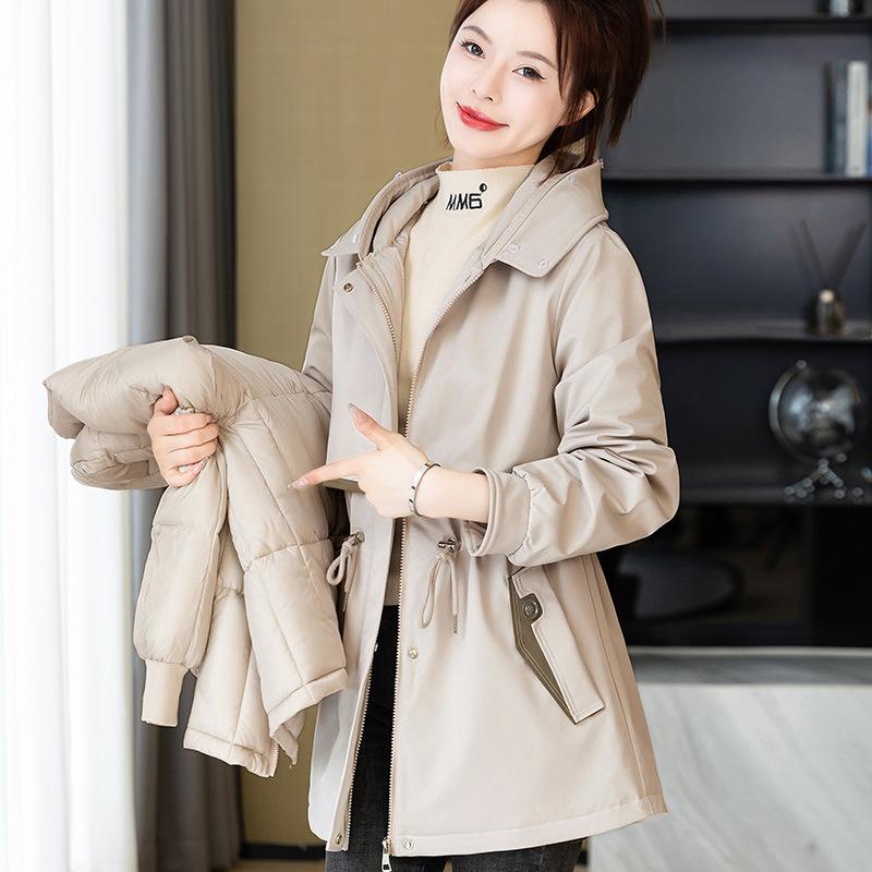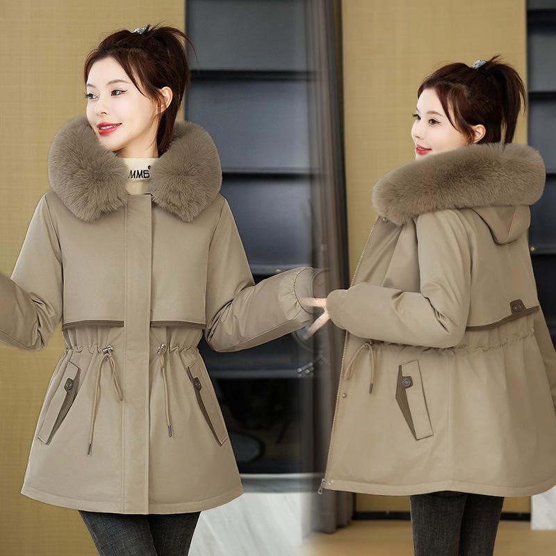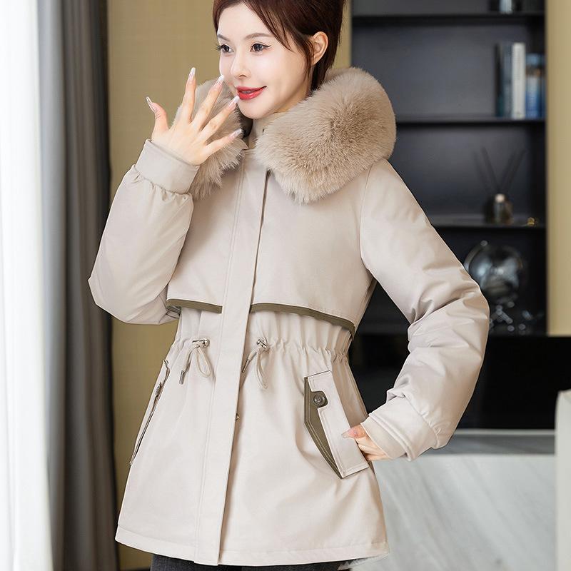 2025 Novo Casaco Parka de Inverno Quente Gola de Pele Removível Algodão Versátil Elegante Casaco Feminino Jaqueta Três em Um