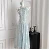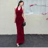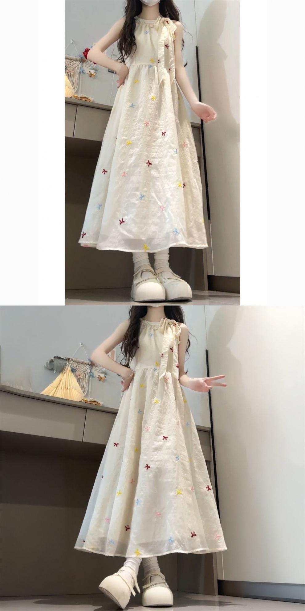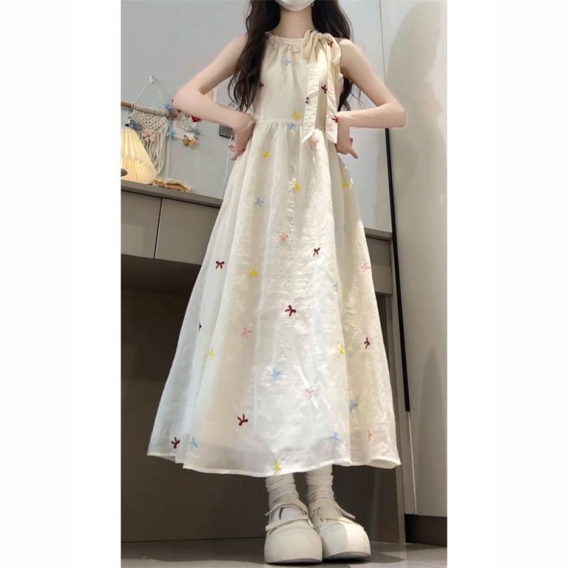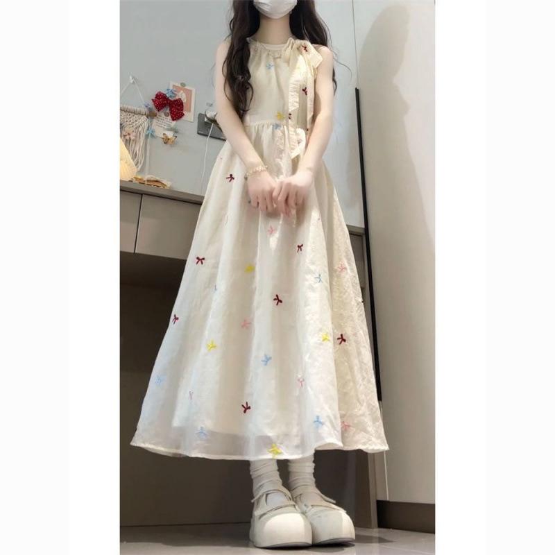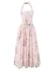 Vestido Halterneck de Gravata Borboleta Estilo Doce para Mulheres, Look Super Fada que Afina a Cintura e Saia Longa Fresca