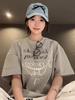 Marca de Moda de Hong Kong Verão Estampada Manga Curta Camisetas Tops Algodão Puro Manga Curta Camiseta Roupas Femininas Tee Primavera e Verão Estudantes