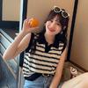 Spot Comércio Exterior Transfronteiriço Preto Senso de Design de Nicho Regata Colete Top Feminino de Verão Solto Casual de Comprimento Médio