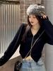 Camiseta Sexy de Manga Comprida Estilo Francês para Garota Quente Outono Ajustada Emagrecedora Zíper Estilo Desejo Puro Nicho Camiseta Base Top Ins Mulheres