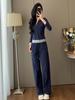 Conjunto Esportivo Casual Estilo Europeu para Mulheres, Nova Moda Primavera 2026 Conjunto Simples de Duas Peças com Mangas Longas e Calças de Perna Larga