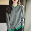 Primavera 2025 novo suéter de lã penteada gola redonda falso cardigã combinação de cores pulôver solto mais blusa de duas peças