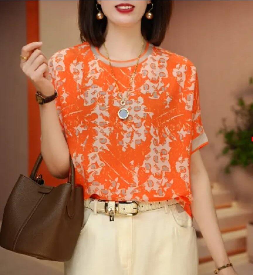 Camiseta de chiffon de manga curta feminina verão mais recente linda estilo estrangeiro que reduz a idade moderna camiseta pequena top emagrecedor
