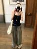 Calça Casual Listrada Única e Chique para Mulheres, Outono 2025 Novo Cintura Alta Solta Emagrecimento Caimento Calça de Perna Larga
