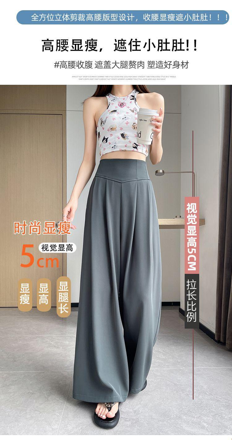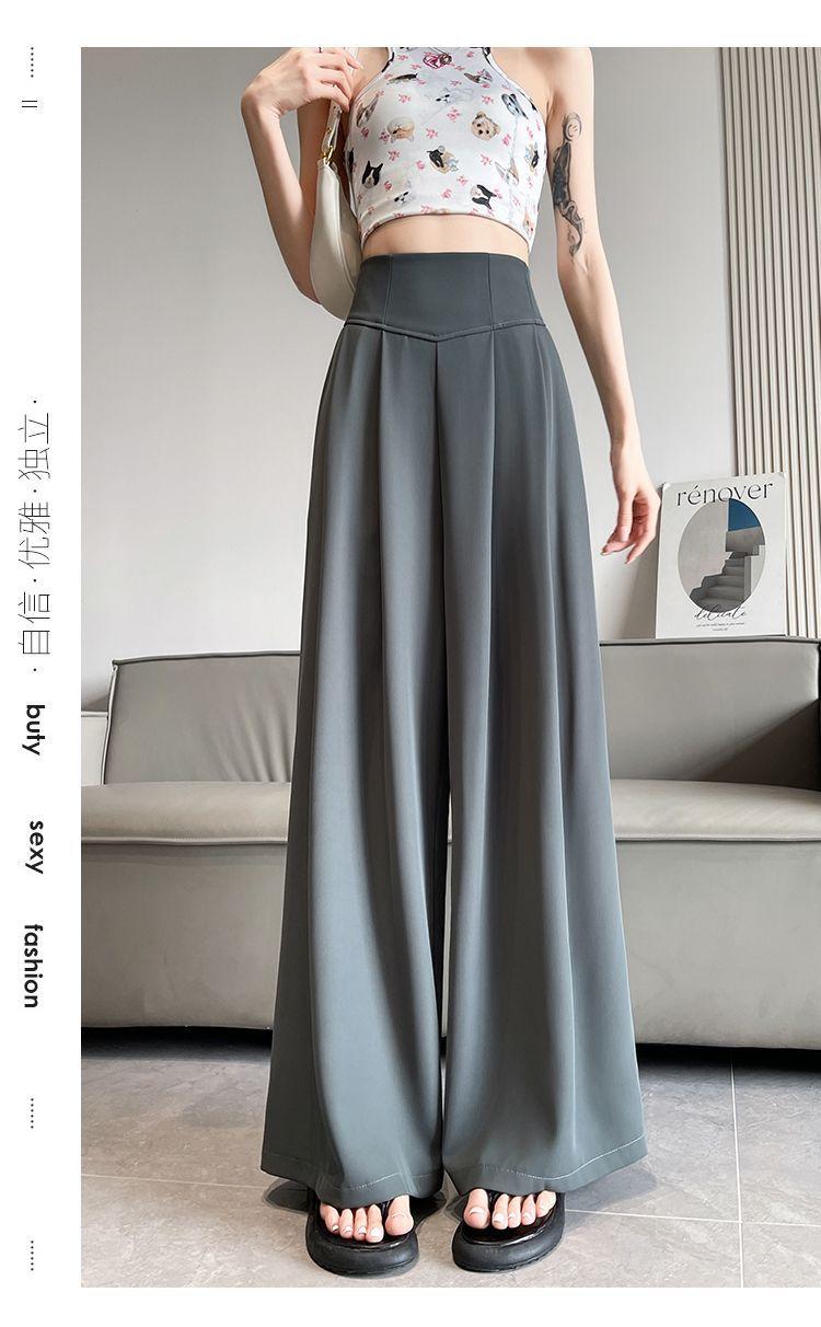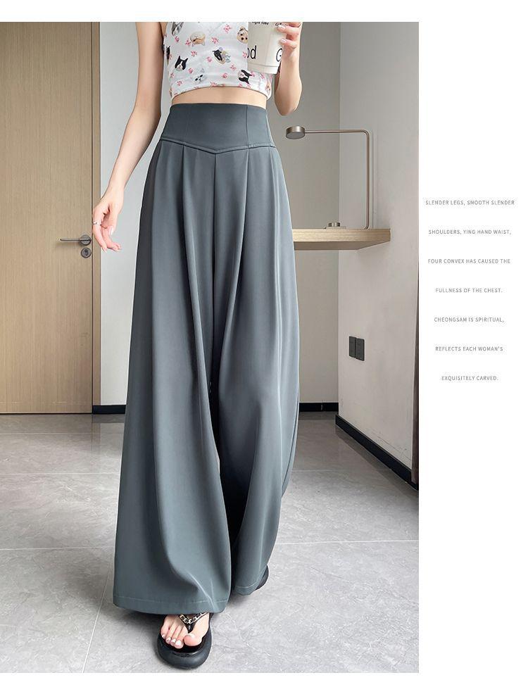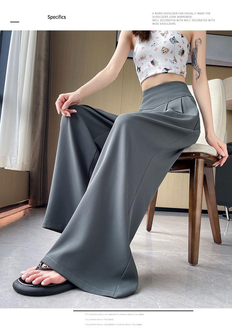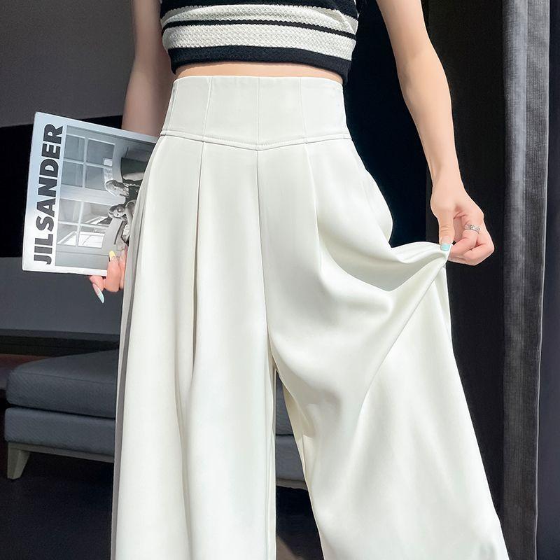 Calças de Alfaiataria Novo Estilo Primavera e Verão 2025 para Mulheres, Calças de Perna Larga de Cintura Alta, Calças Longas Retas Casuais Soltas com Bainha Larga até o Chão