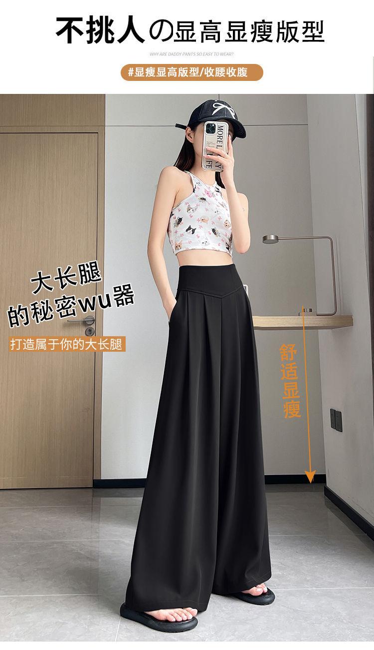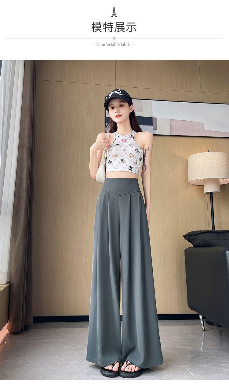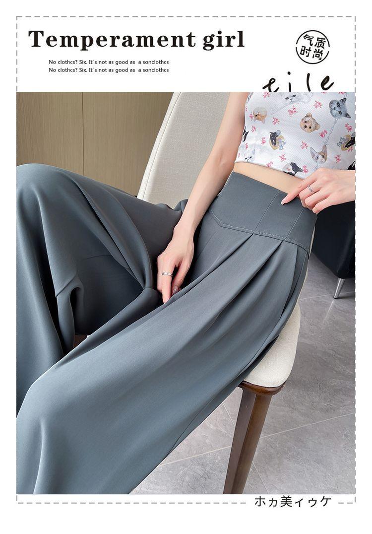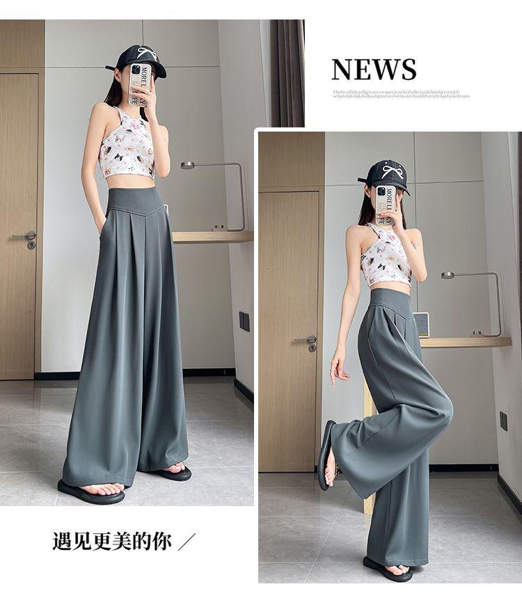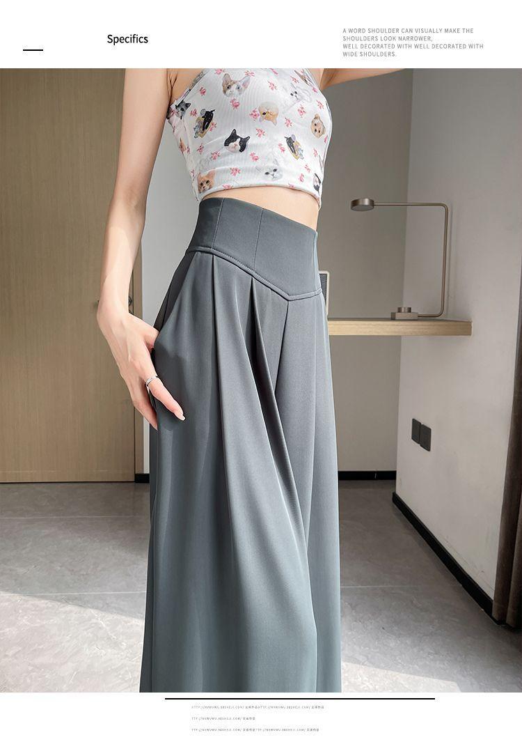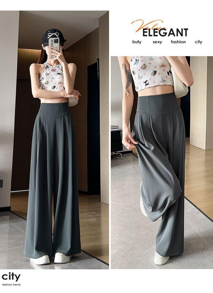 Calças de Alfaiataria Novo Estilo Primavera e Verão 2025 para Mulheres, Calças de Perna Larga de Cintura Alta, Calças Longas Retas Casuais Soltas com Bainha Larga até o Chão