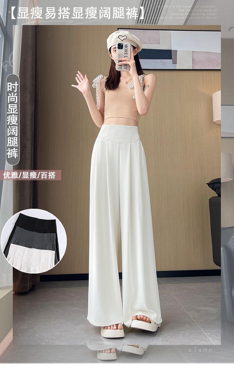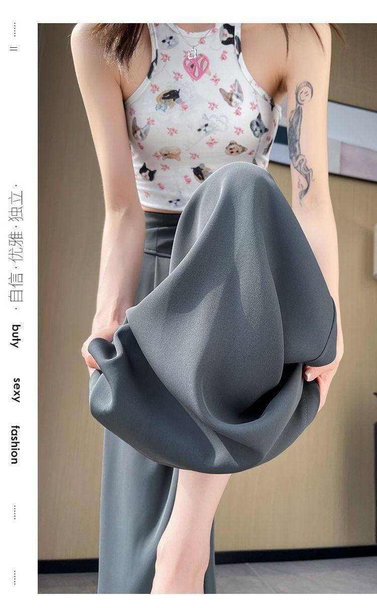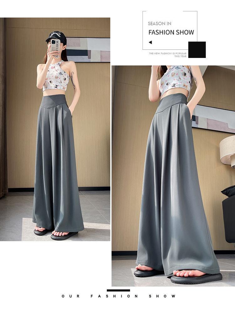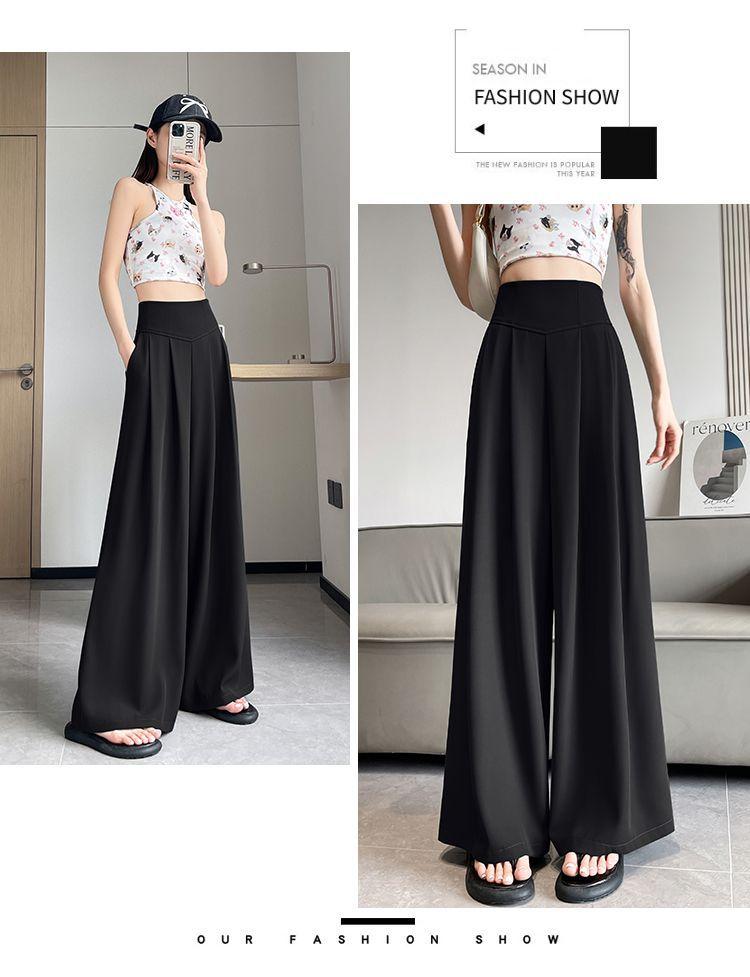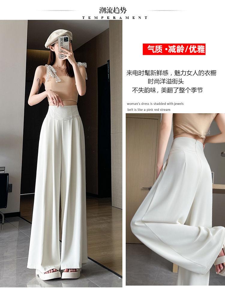Calças de Alfaiataria Novo Estilo Primavera e Verão 2025 para Mulheres, Calças de Perna Larga de Cintura Alta, Calças Longas Retas Casuais Soltas com Bainha Larga até o Chão