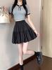 Tamanho Plus Gordinha mm Verão Design Cintura Alta Doce Plissada Fofa Saia Botão Saia A-Line Saia Bolo para Mulheres