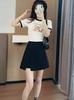 Verão 2025 Nova Moda Feminina Saia A-Line Emagrecedora de Cintura Alta com Fenda, Saia Curta Estilo Preppy para Mulheres Baixinhas