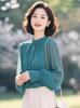 Blusa de Chiffon Gola Careca Francesa Feminina 2025 Início da Primavera Nova Super Linda Estilo Ocidental Camisa Rejuvenescedora