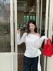 Xiuxixi 2025 Outono Novo Rótulo Branco Temperamento Ombro Único Cor Sólida Tricotado Manga Longa Top Suéter Mulher 89538