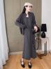Conjunto de Suéter Novo Outono e Inverno 2025 Feminino Estilo Preguiçoso Saia Tricotada com Fenda Jaqueta Cardigã com Zíper Conjunto de Três Peças