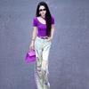 Roupa casual popular deste ano 2025 verão novo versátil roxo estilo puro e sexy pulôver top slim-fit roupa feminina