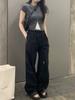 Calças Cargo Femininas Estilo Americano Novo Verão 2025 Cintura Alta Casual Calças Paraquedas Cordão Dois Usos Calças Retas Comprimento Total