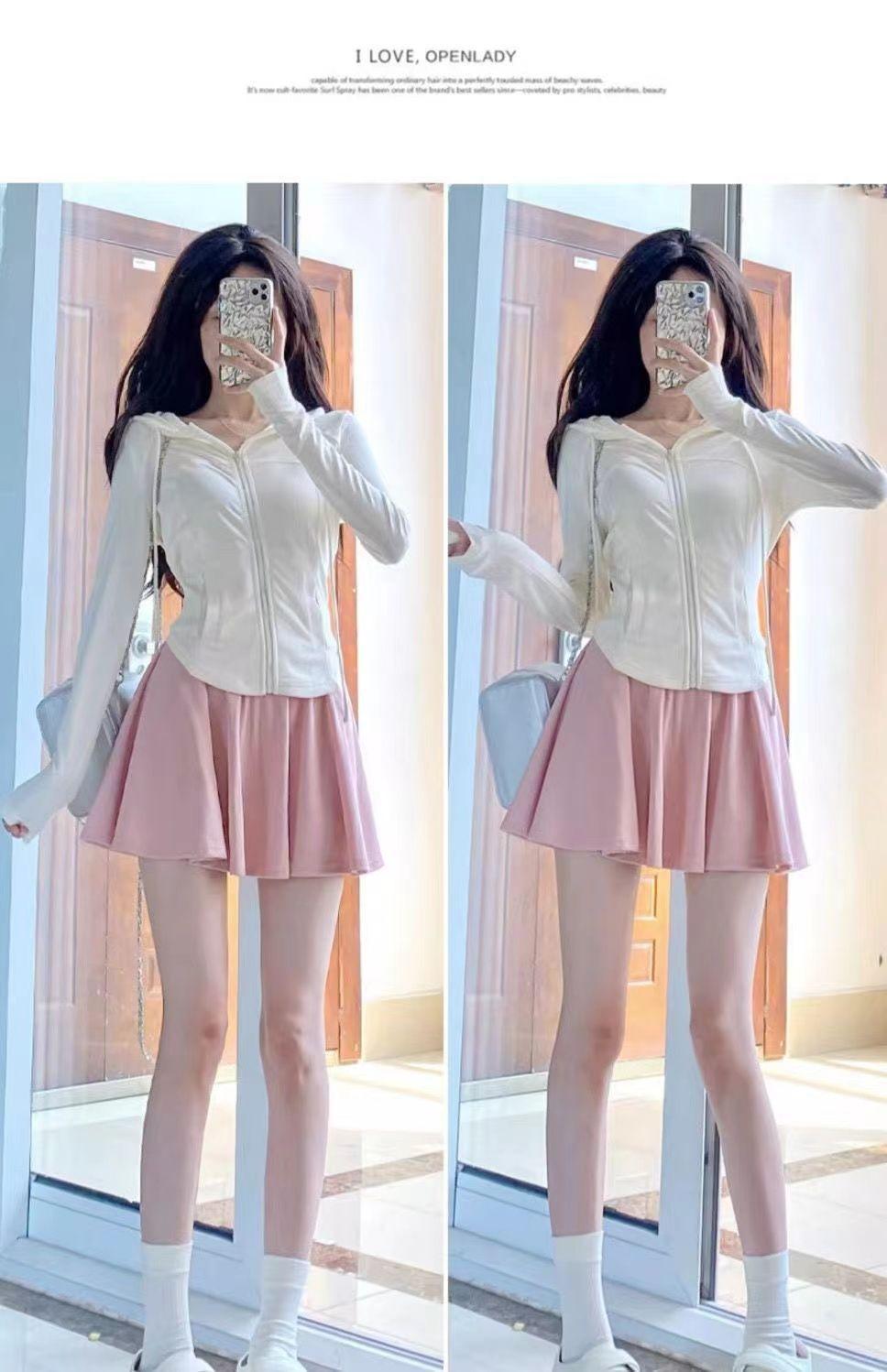 Saia de Ioga Esportiva Feminina de Verão Anti-Exposição Saia de Ioga Corrida Fitness Tênis Badminton Plissada Saia Branca