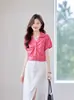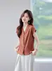 Primavera e Verão Novo Estilo Cor Sólida Versátil Seda Camisa Feminina de Manga Curta com um Top de Lapela Simples