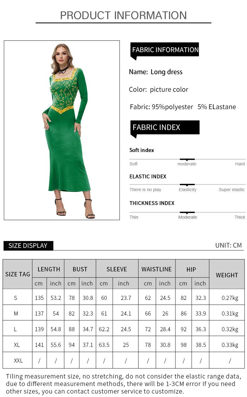 Halloween Shrek Fiona Princesa Cosplay Apresentação de Palco Vestido Longo Verde Fantasia